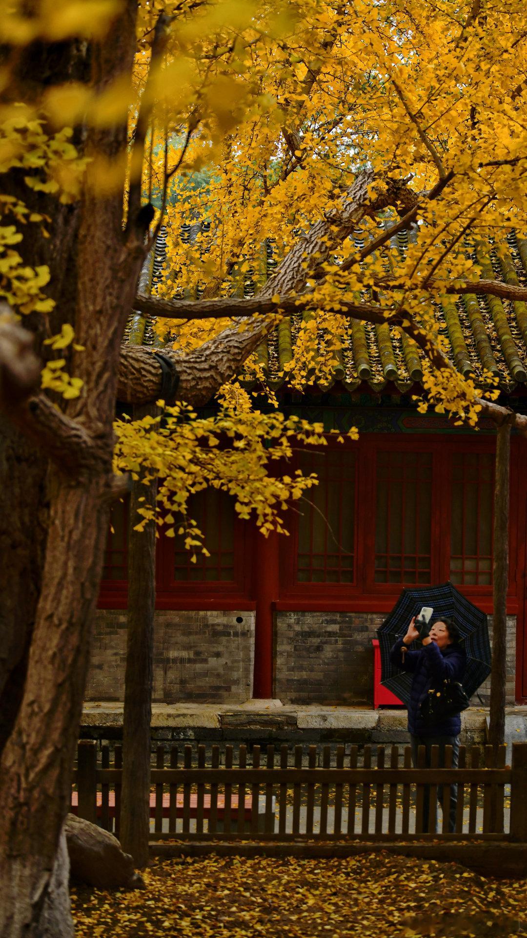 🌨️深秋最后一天我去了景山公园,不上山也浸在浓浓的秋意里。南门附近的银杏道仍铺