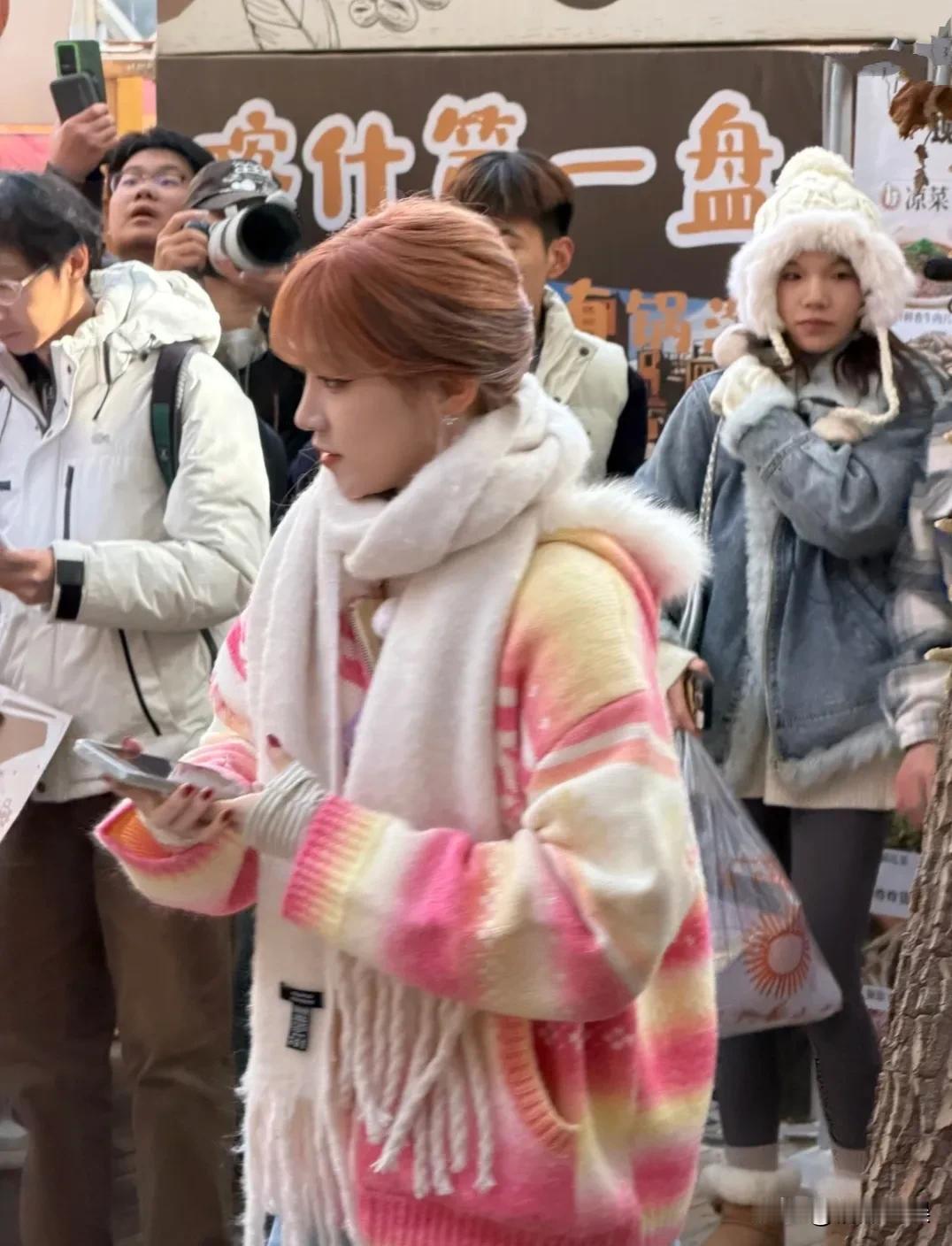 毕竟是章子怡女儿醒醒也追的明星,宋雨琦这颜值确实高! 综艺《跑男》现身新疆喀什录制,沙溢,李晨,郑恺白鹿等人也一同现身,现场人头攒挤,围得水泄不通。 宋雨琦一头金色卷发,肌肤如瓷,小脸精致,杏目熠熠,身材窈窕。穿着粉色毛衣,显得俏皮靓丽,仿佛漫画中的美少女降临现实。 有一说一,她在人群中就像是会发光一样,漂亮,洋气,在人群中确实很显眼!