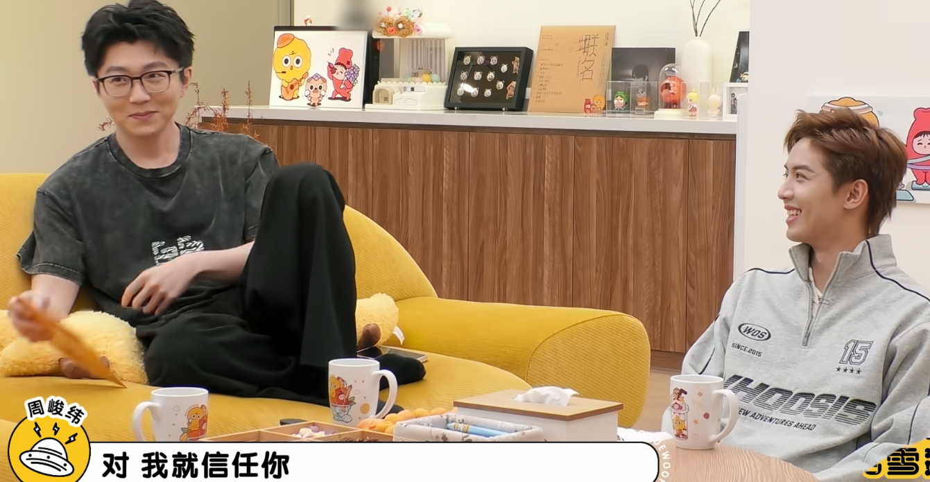 旁边的周峻纬,与毛不易在2018年就认识了,私下经常聚在家里吃饭,他也一脸肯定地对毛不易说:“对,我就信任你!”