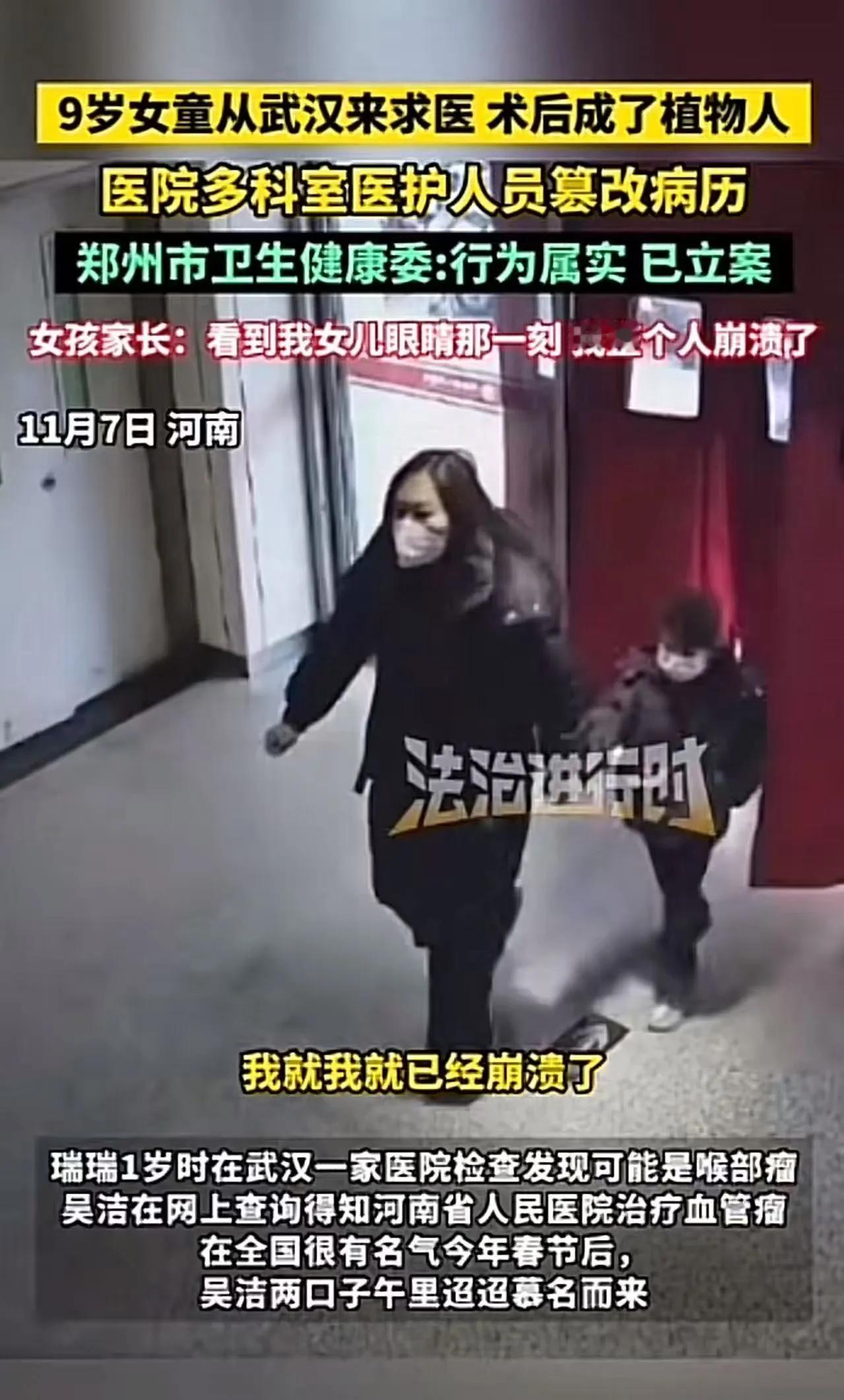 河南,9岁女童做一个“小手术”,却成了植物人,医院多科室医护人员为逃避责任,篡改