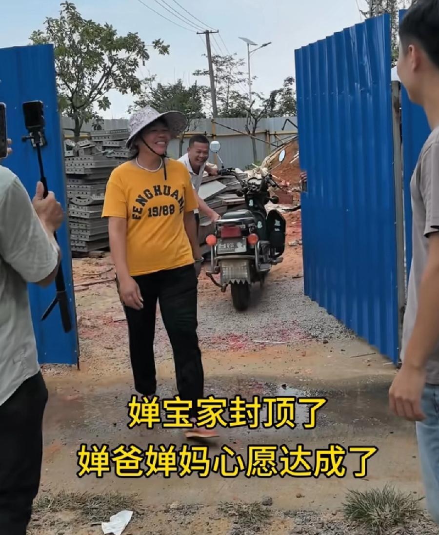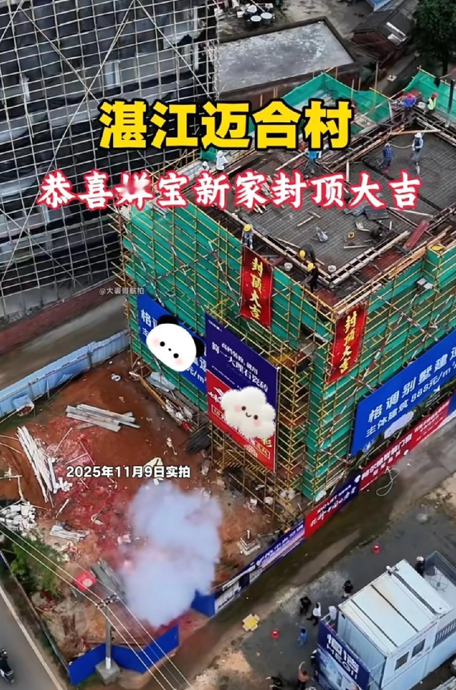 全红婵老家新房,封顶了!11月9日,日子挑得很好,正好全运会开幕式,可惜全红婵没参加,封顶现场非常热闹,全爸买了一大盘鞭炮,像过年一样,新房子目测3层,悬挂了很多家装公司广告牌,应该都是赞助商,自建房还设项目部的,放眼全国,也只有全红婵独此一家了!封顶就快竣工了,接下来就是装修了,期待全红婵新房亮相!