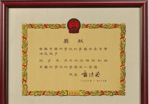 中国科学院科学奖金是新中国成立初期设立的学术奖项。 1957年1月24日,首次颁发1956年度科学奖金(自然科学部分),共评选出34项成果。 其中三个一等奖: 钱学森《工程控制论》 华罗庚《典型域上的多元复变数函数论》 吴文俊《示性类及示嵌类的研究》 各获奖金1万元。 该奖项在1978年被溯源为 首届国家自然科学奖。