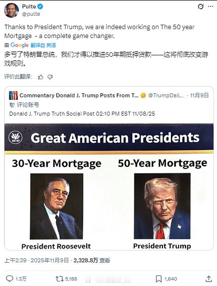 美国联邦住房管理局局长表示感谢特朗普推广50年抵押贷款的打算,很多美国人表示这个