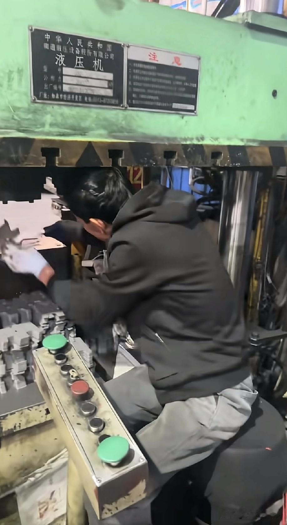 大爷不愧是大爷,居然敢把头伸进去那冲压件,一般胆子大的人是用双手取,大爷直接把头和双手伸进去取。 这要是出点问题,直接一次性解决了,维权的机会都没有。不知道是大爷安全意识淡薄,还是他所在的工厂没有安全操作规范。 正规一点的工厂,每一个岗位都有安全作业指导书,绝对不会要求员工把头和手伸进冲压床模具里面去拿冲压件的。 希望这位大叔不要这样干了,如果是工厂要求这样做的,第一时间举报或者跑路吧!保命重要。