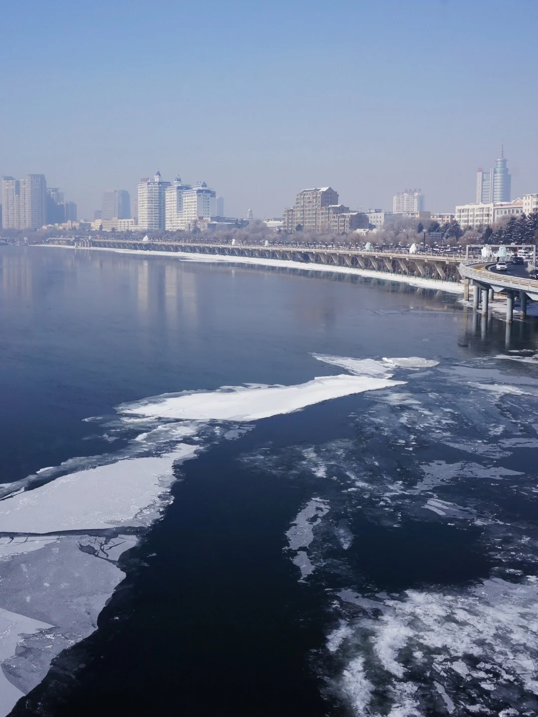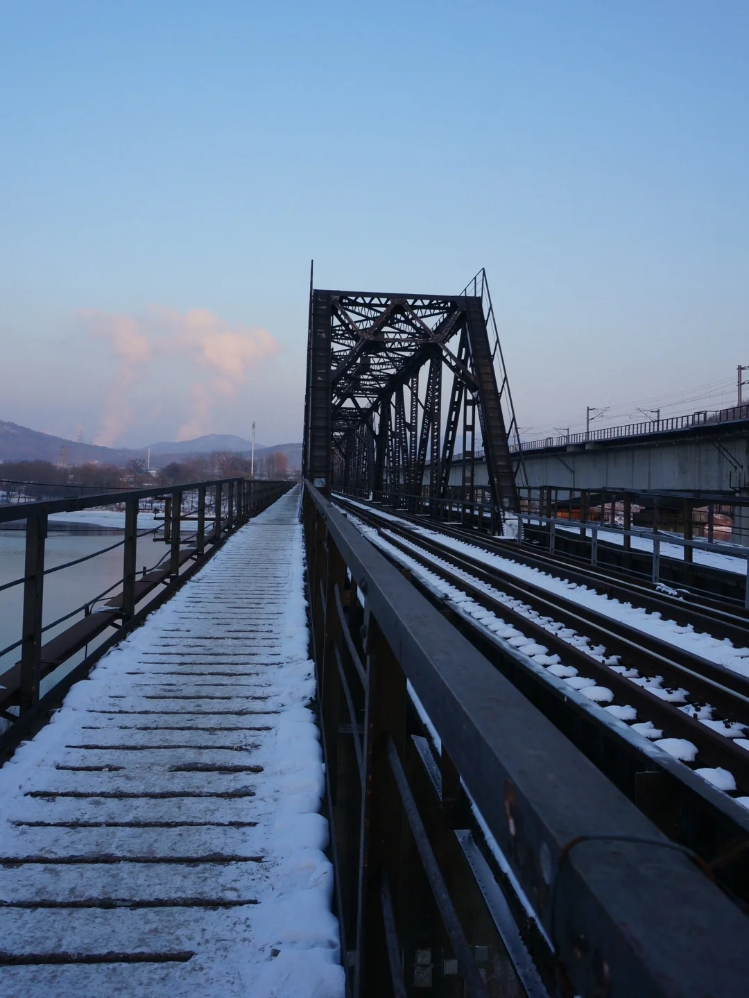 2⃣松花江铁路桥:定位松铁秀苑(东门),积雪的铁桥和江面很出片!恐高慎入👀