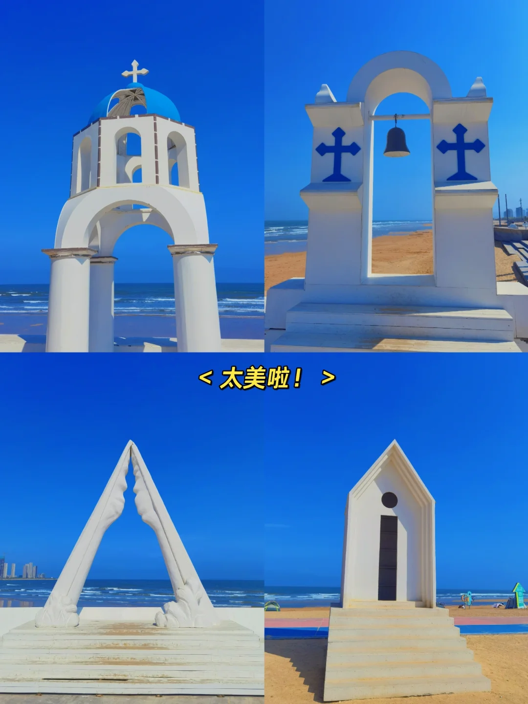 来黄岛玩沙滩不仅仅有金沙滩,还有红树林+城市阳台=灵山湾海岸线❗️一路沙滩和风景真的美不胜收!圣托里尼一般的标志性建筑就在红树林度假世界前边的沙滩,真的很出片!