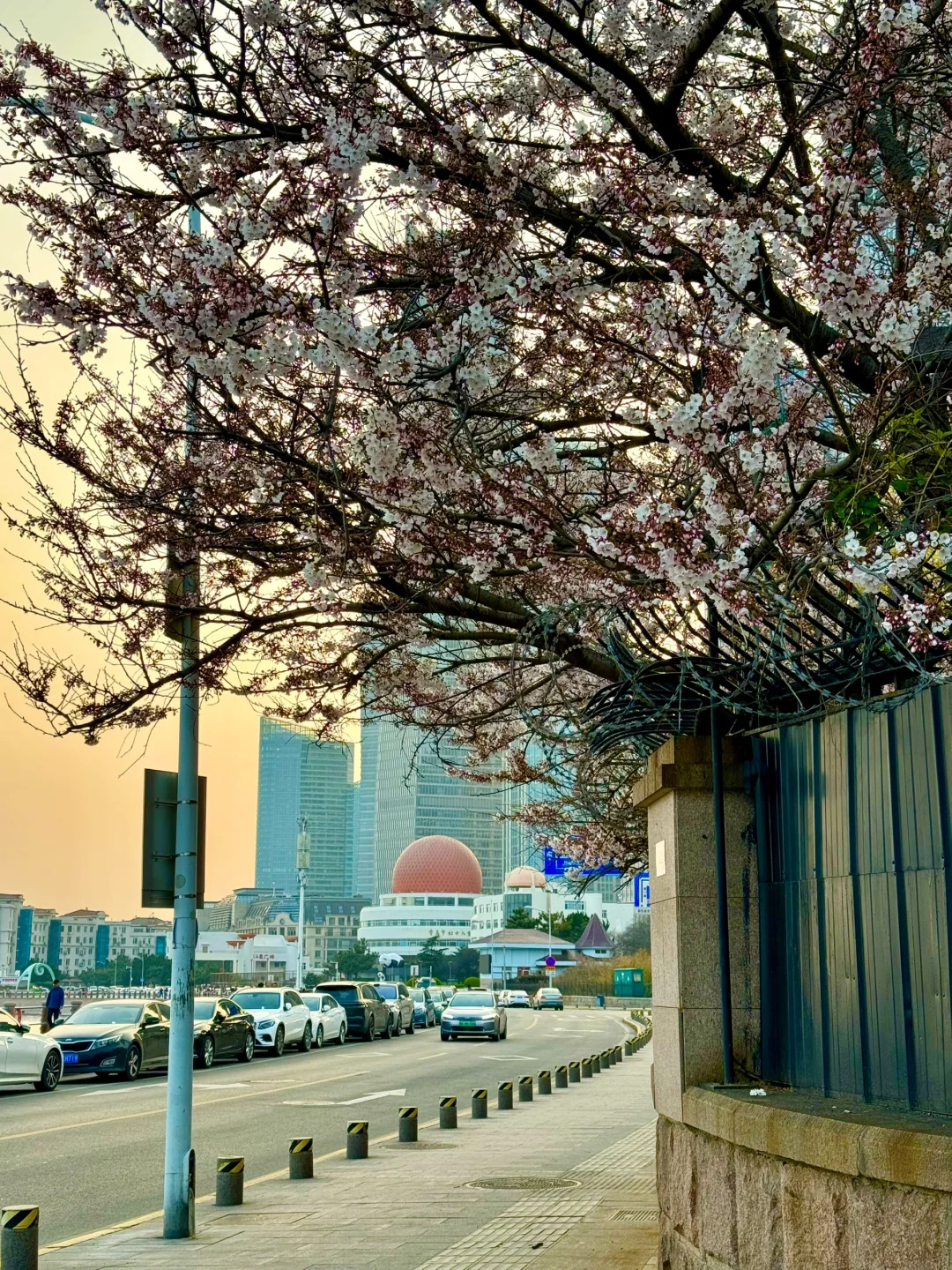 📷攻略:五四广场附近,建议晴天☀️前往,蓝色的海和白色的樱花才是yyds,本周末是盛花期,可放心前往