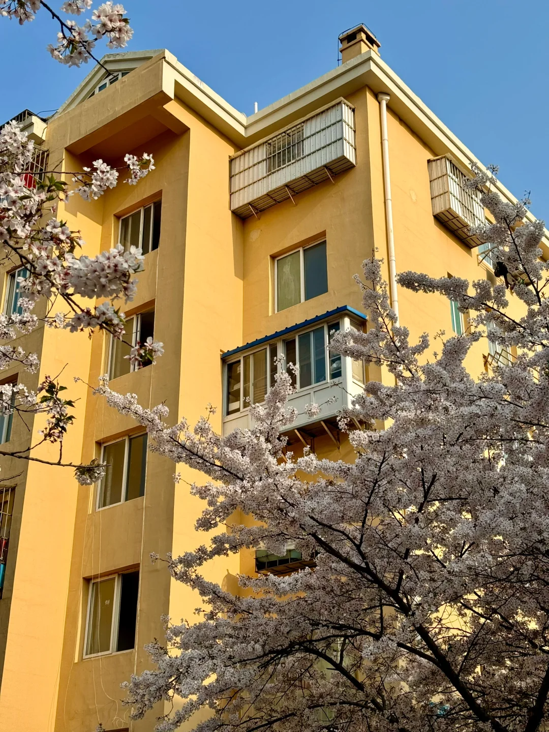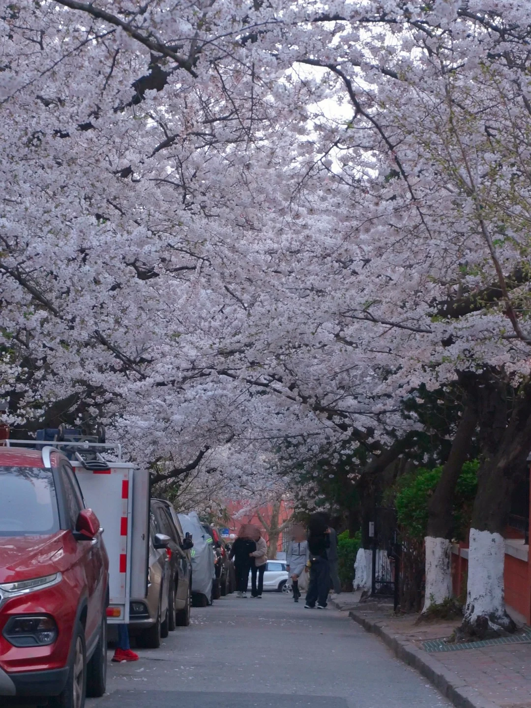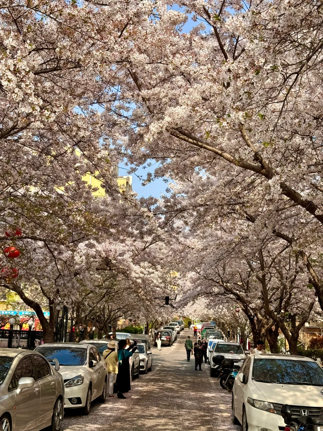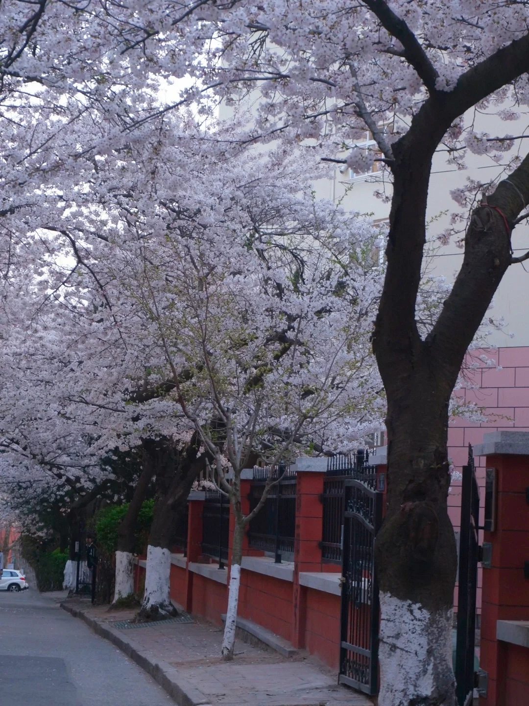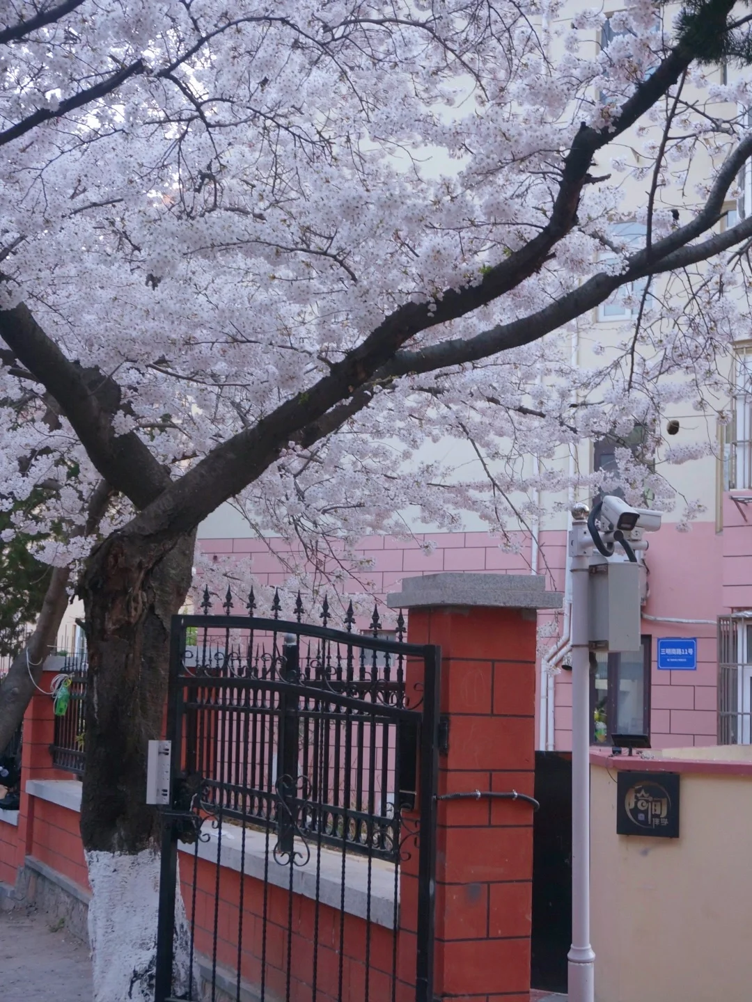 📷攻略:超茂密的樱花大道,虽然没有翠湖社区那么多,但好在离核心景点比较近,附近去燕儿岛,五四广场都不远,居民楼里的红墙和樱花尊嘟很配,站在樱花树下等一场樱花雨叭