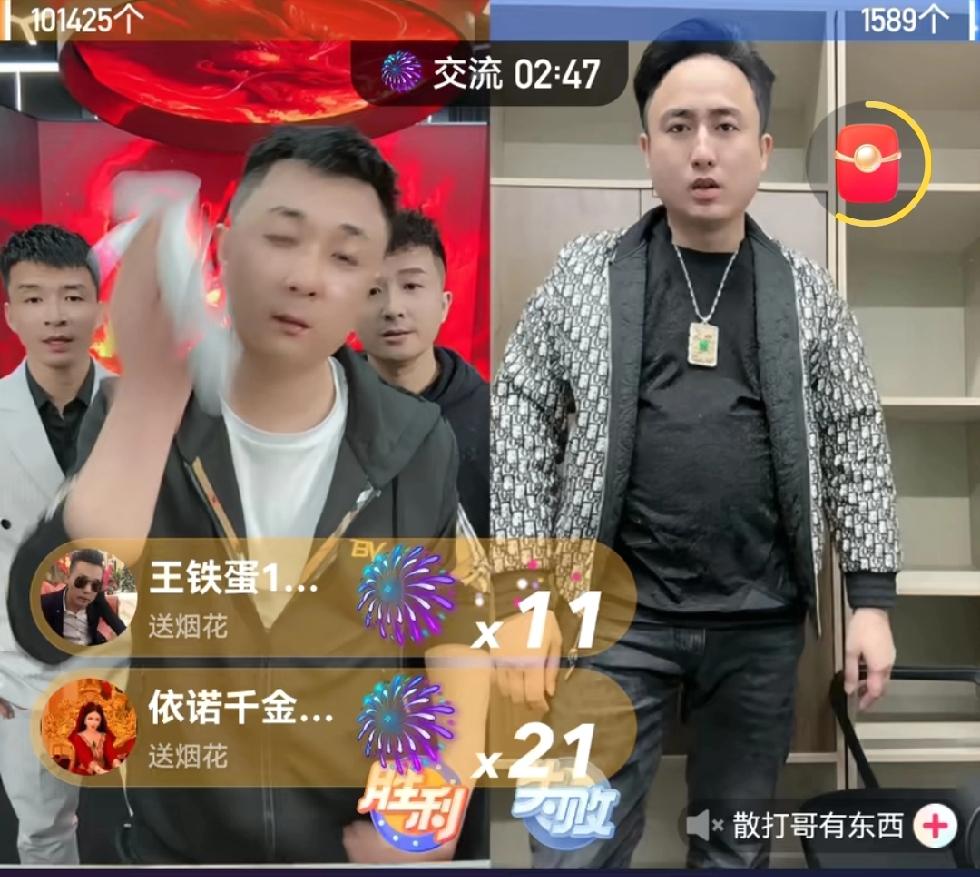 算算两场pk看热闹的一共刷了多少礼物,3641+2062=5703,合计5703个穿云箭,接近300块钱一个吧,170万左右。 烟花应该是20块钱一个,101425+1589=103014,合计也10万多,200万左右。 两场直播,两个人礼物合计370万左右,不知道算的对不对。 平台分一半,剩下180万左右吧,每人也有90万,这么短的时间,太赚钱了。 pk双方都说不是剧本,其实无所谓是不是剧本,最主要的是观众刷礼物,上分,出钱出力了。富豪打pk,看热闹的家人出力,这个玩法,谁琢磨出来的,真牛。