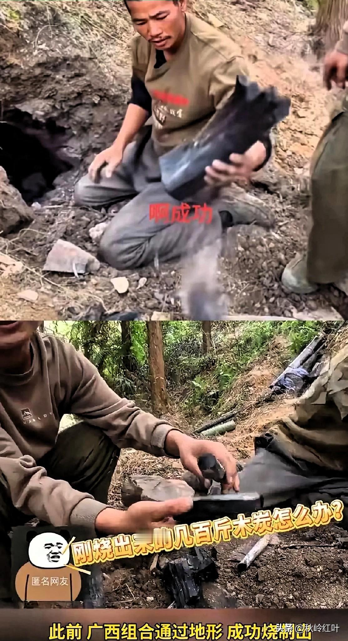 我敢打包票,以后荒野求生节目组,都要禁止广西人报名参加了,因为广西人野外生存能力,真的太强了。 毕竟看了他们的操作,你根本分不清这是生存挑战赛,还是荒野改造真人秀,其他选手简直是来陪跑的。 别的选手上了节目,日子过得那叫一个煎熬。天不亮就揣着空肚子满山跑,能找到几颗野果就算大收获,运气差时只能嚼树皮充饥。渴了只能找浑浊的溪水,简单过滤下就硬着头皮喝,生怕闹肚子。到了晚上更惨,随便找块草丛或背风的土坡蜷着,裹着单薄的防潮垫,又怕野兽又怕冷,整晚都睡不踏实,能熬到第二天就算胜利。 广西老表一进场,画风瞬间跑偏。没两天就凭着双手挖出个像样的窑洞,不仅挡风遮雨,还特意整理出休息区和储物区。更绝的是他们居然就地炼起了木炭,捡枯枝、搭炭窑,一套流程熟练得像村口开炭厂的老手,最后足足烧出400斤木炭。这波操作让节目组都看愣了,有这么多木炭,别说过冬,就算在野外煮热饭、烤野味都绰绰有余。 这其实都是广西的地理环境逼出来的本事。当地多山地少平地,祖辈们上山干活、采药时,早就练出了挖庇护所、就地取材的绝活,这些技能早成了刻在骨子里的本能。别人求生是“挣扎保命”,广西老表却是“惬意安家”,这种降维打击直接打破了比赛平衡。 难怪网友都调侃,再让广西老表待下去,他们说不定能开垦出菜园、搭起篱笆,甚至养上几只野禽,把荒野过成田园生活。