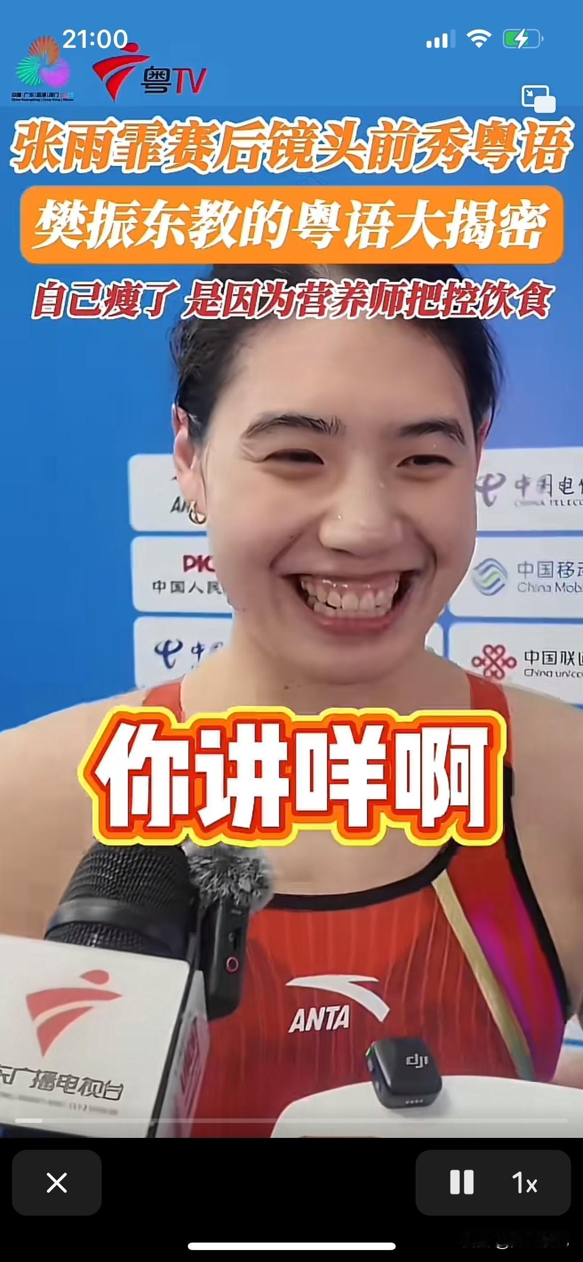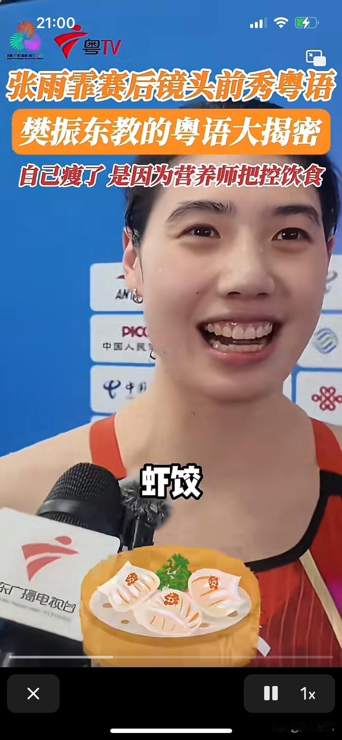 “泳坛一姐”张雨霏来广东参加比赛,学了一句广东话“虾饺”,这个到底是什么意思,有没有广东人翻译一下的, 张雨霏每次比赛都是比较乐观,不管是大赛还是小赛,国内还是国外,她都是一种乐观开朗的心态去对待,而且比赛的成绩也不差,都是在前三名,很优秀的一位运动员。