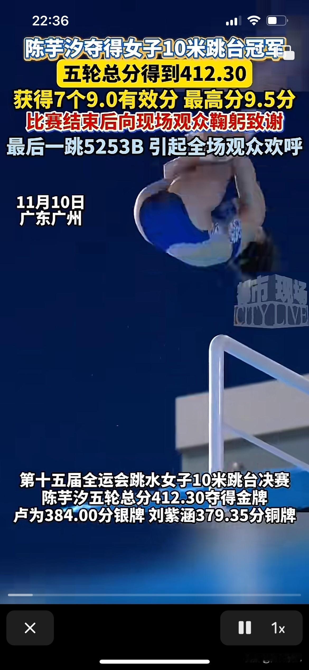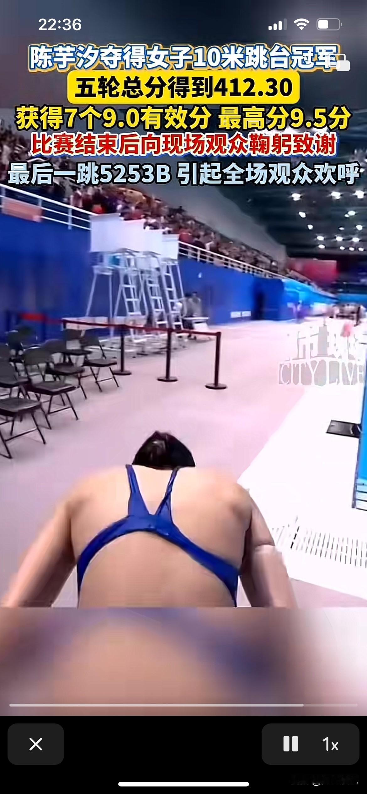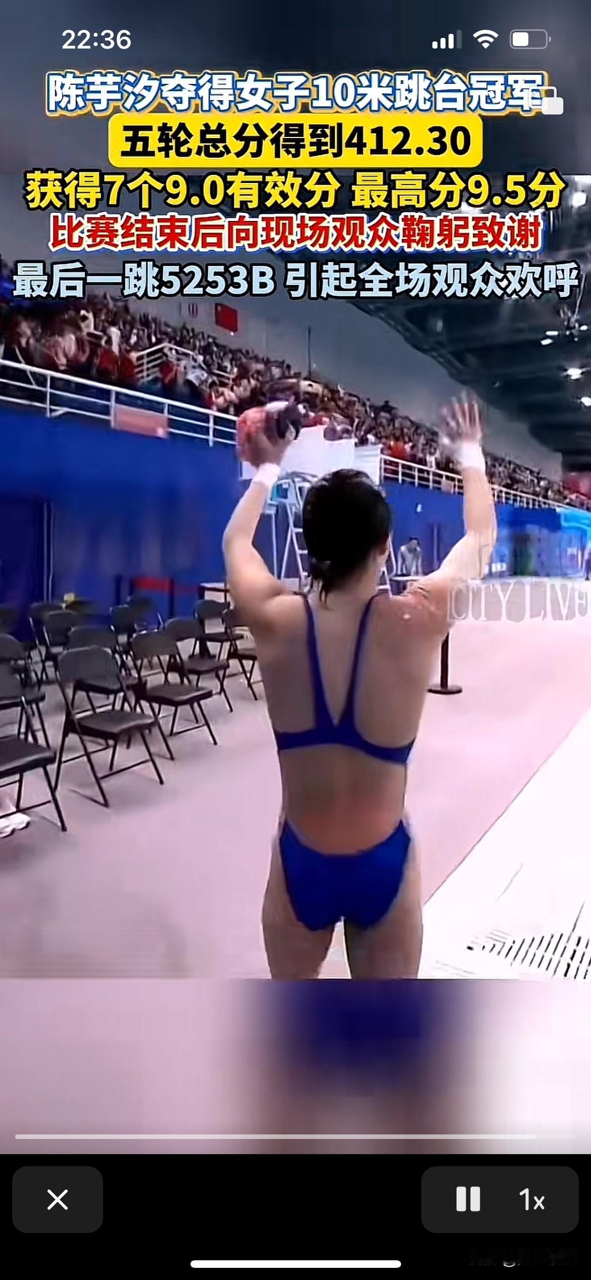 陈芋汐终于实现自己的目标,在全运会上拿到单人冠军,这就是冠军的实力,低调不张扬,一路过关斩将,这个冠军就是属于她的。 陈芋汐真的最优秀。一个自律的孩子,内心强大,刻苦训练国家利益放在首位,经济体育就是靠实力的,跳台就是检验实力的,只要站上这个跳台,都是优秀的。
