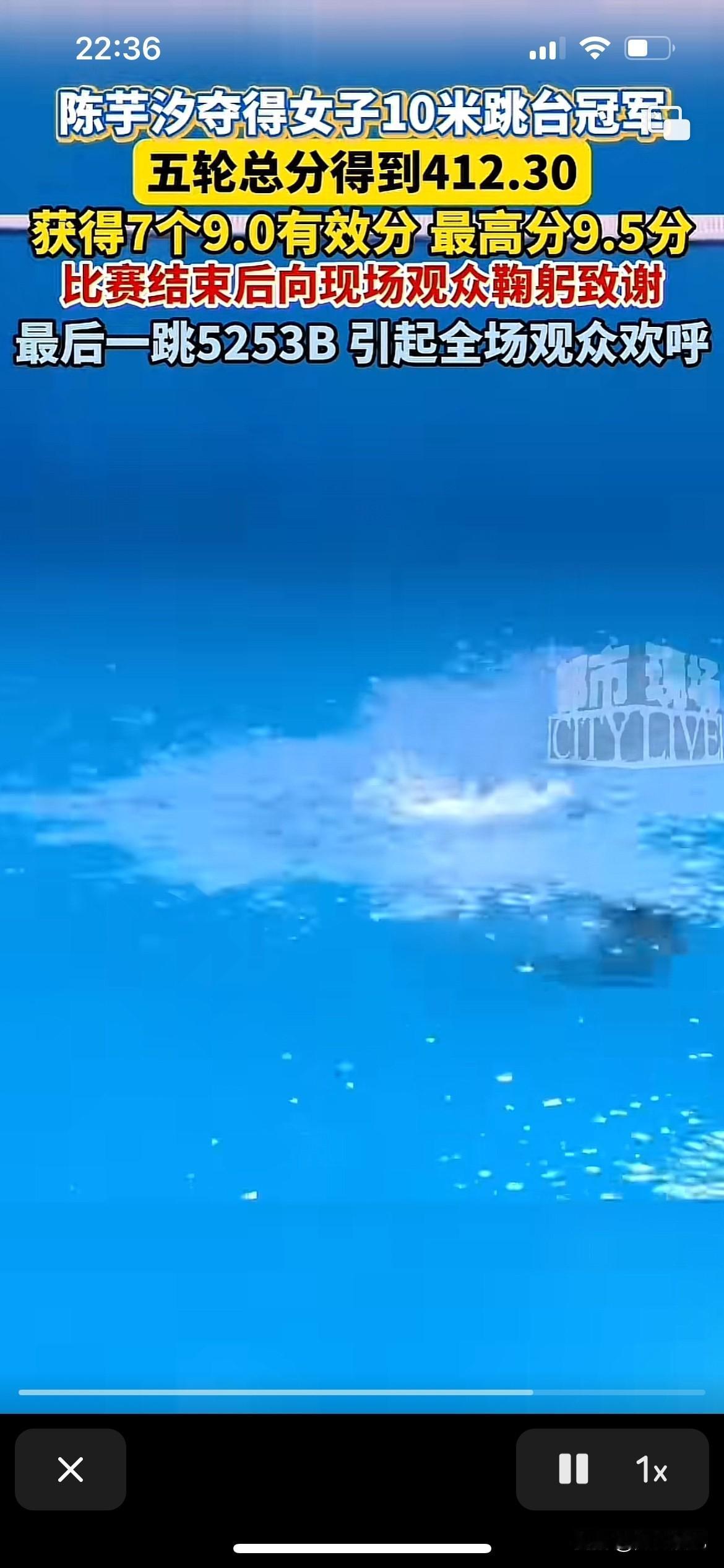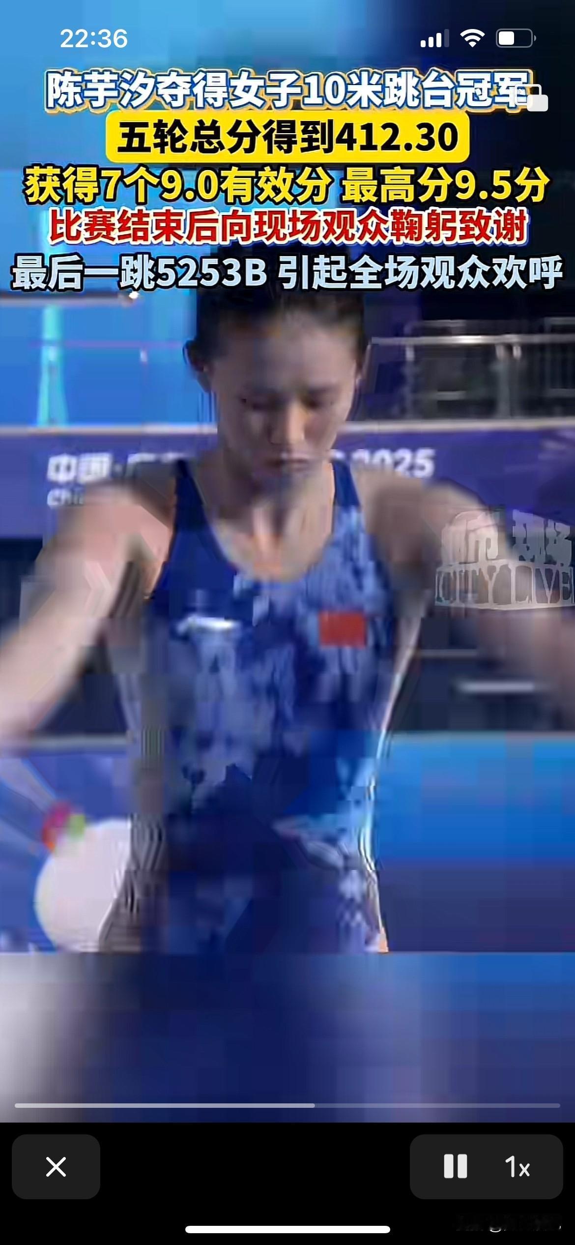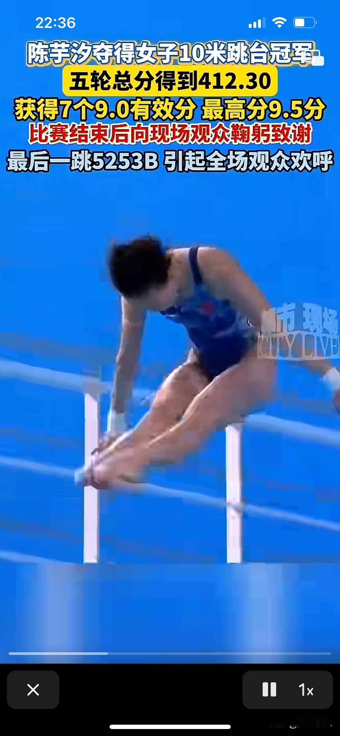 陈芋汐终于实现自己的目标,在全运会上拿到单人冠军,这就是冠军的实力,低调不张扬,一路过关斩将,这个冠军就是属于她的。 陈芋汐真的最优秀。一个自律的孩子,内心强大,刻苦训练国家利益放在首位,经济体育就是靠实力的,跳台就是检验实力的,只要站上这个跳台,都是优秀的。