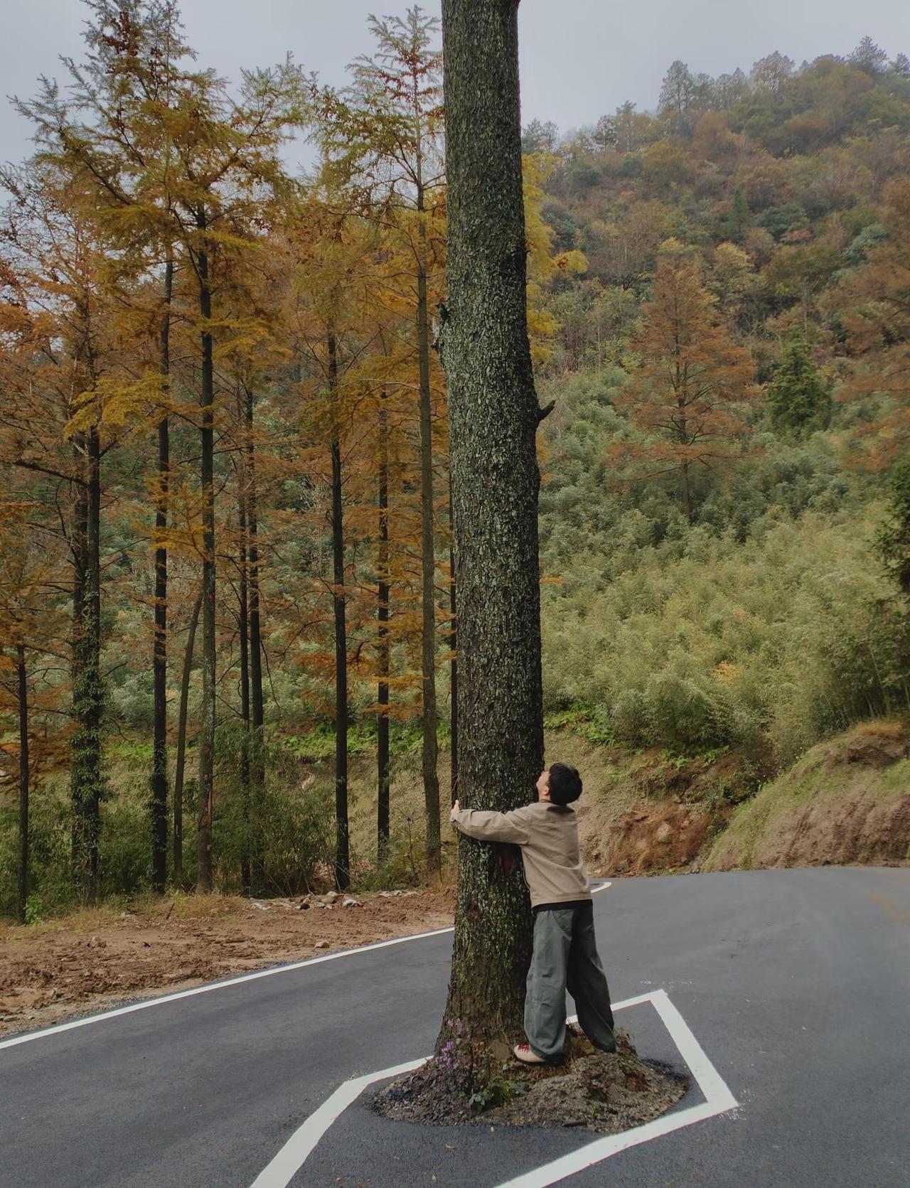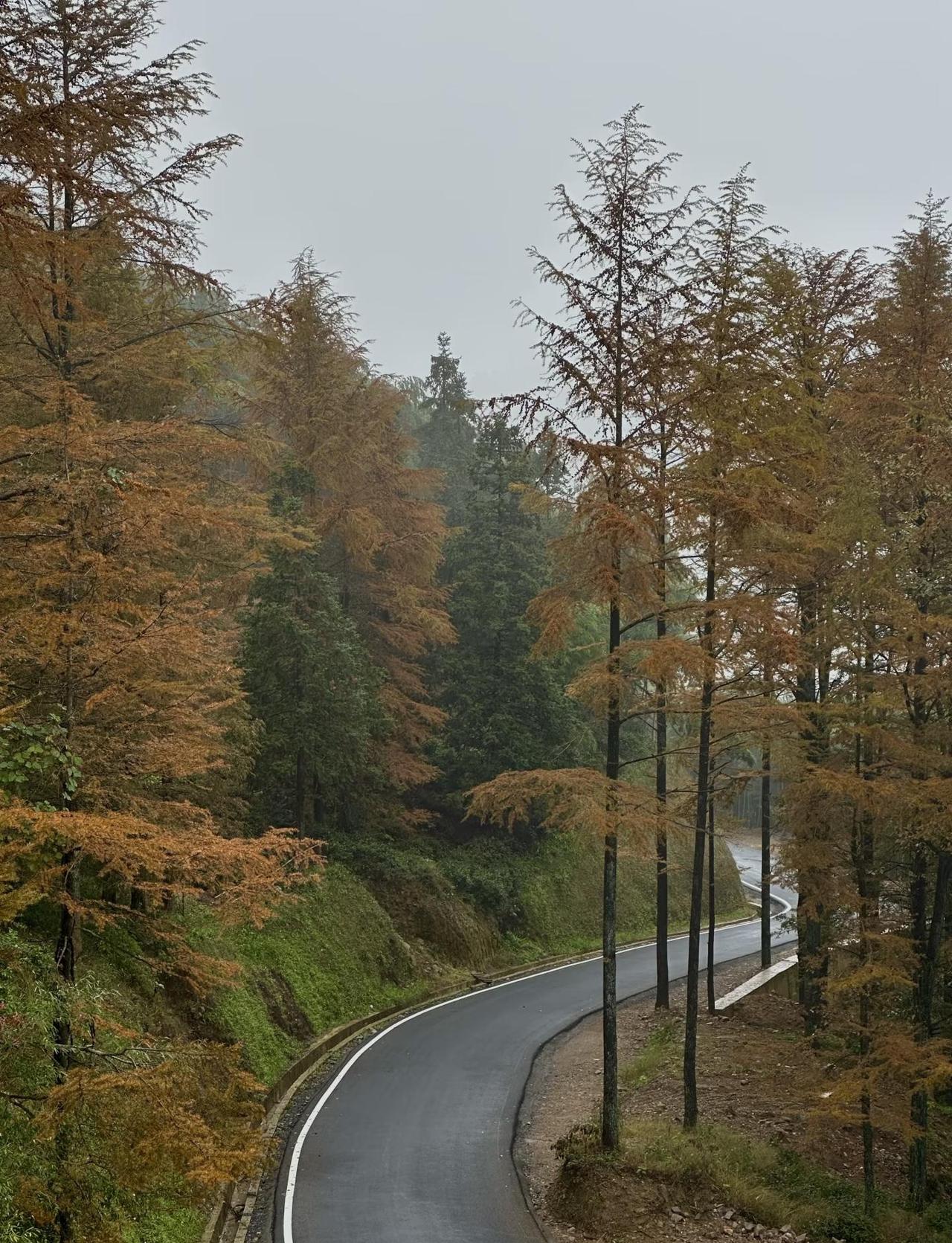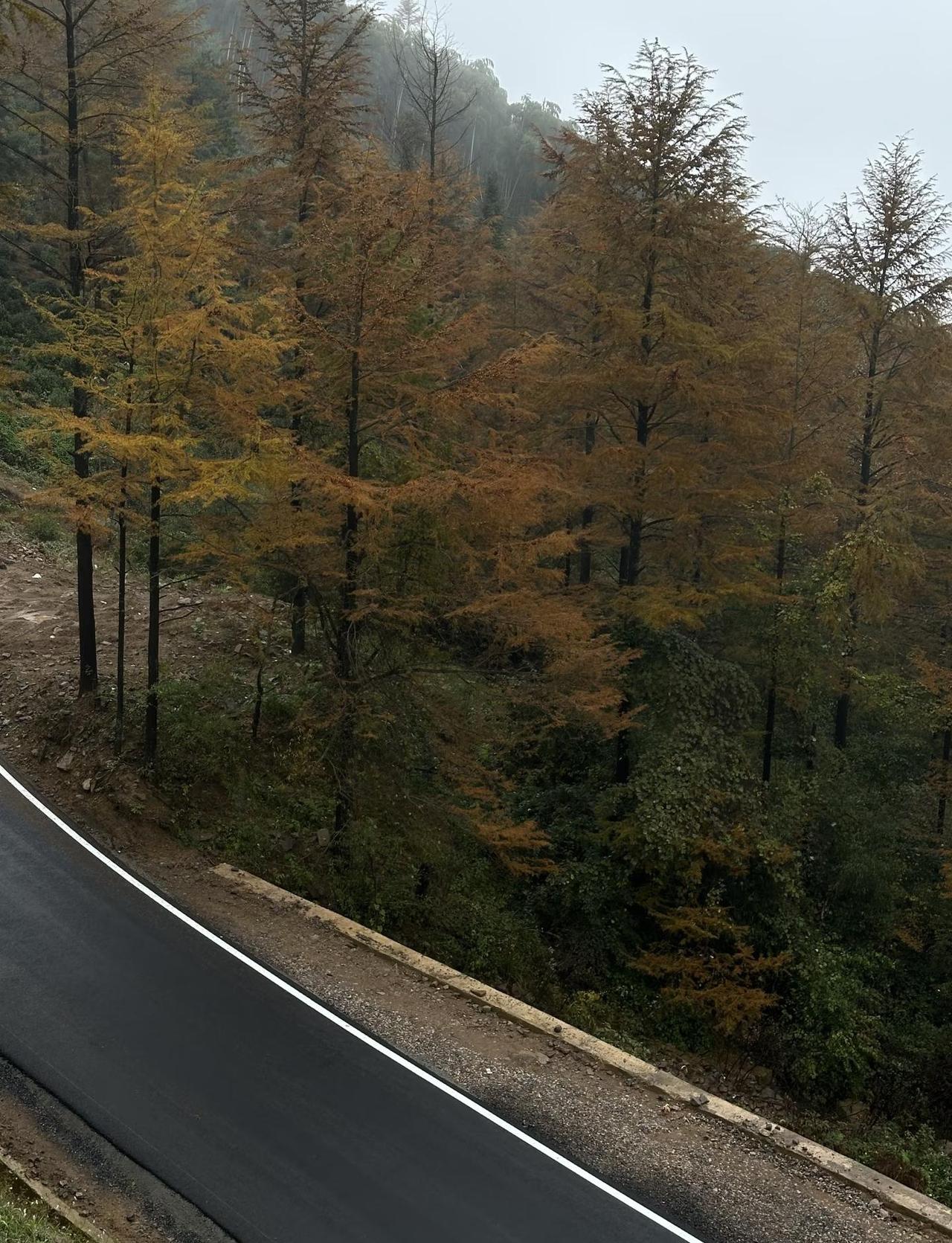 安吉金钱松森林公园边上的野生金钱松 秋游入山去 去户外捕捉秋天 金钱松 金钱松公园已经去过两次,看着门票从20多到现在的49,个人认为这条自驾线比金钱松公园更有意思,更有看点,随停随看,人少车少,重点是免费! 这条连接林家塘村和九亩村的路,目前地图上虽然显示的是“在建”状态,其实11月5日已经通车,路况非常好。 图为今日实拍,今天下雨的缘故,上午雾气缭绕,有寂静岭的感觉(p5-p7),下午雾气短暂散去,露出金钱松的真容,实在是太漂亮了,就是想要的秋色!趁着周末,大家赶紧冲!