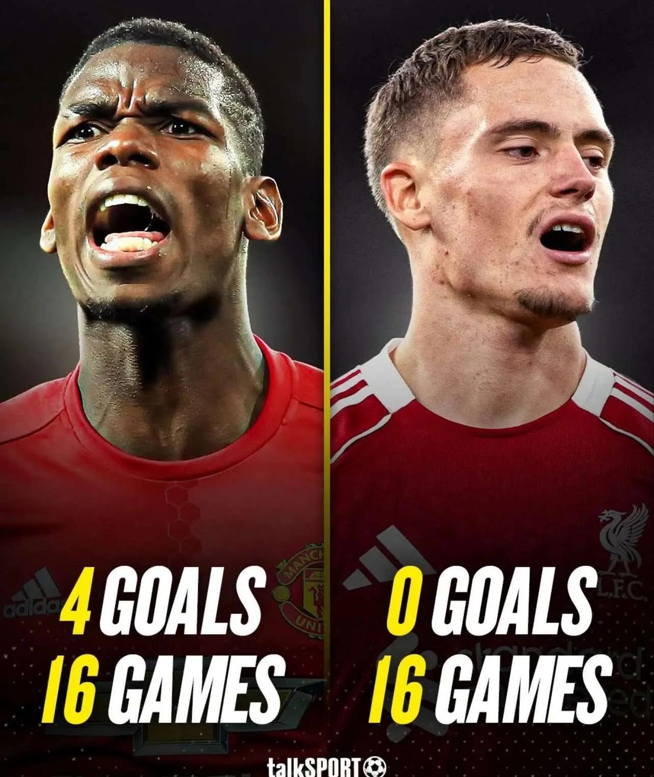 talk sport统计,博格巴曼联时期vs维尔茨利物浦时期数据对比。 博格巴在曼联前16场比赛4球 维尔茨在利物浦前16场比赛0球