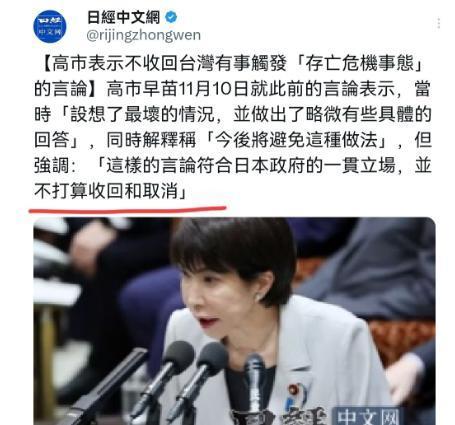 高市早苗撂话,说出去的话,不收回!11月10日,就在我们对高市早苗有关言论表达强烈不满,并交涉之后,高市早苗又出来撂话了,高市早苗声称,关于是否收回台湾发生紧急情况可能触发“存亡危机事态”的回答,高市早苗对此予以否定。高市早苗强调称:这样的言论符合日本政府的一贯立场,并不打算收回和取消。 11月10日,中日关系本就微妙的氛围里,又炸出一颗“惊雷”——日本政客高市早苗再次就涉台问题大放厥词,那嚣张劲儿,仿佛要把国际关系的基本准则狠狠踩在脚下。 就在此前,我们对高市早苗那些严重违背一个中国原则的言论表达了强烈不满,还进行了严肃交涉。本以为这能让她有所收敛,可谁能想到,她不仅没反思,反而变本加厉,再次跳出来“撂狠话”。 高市早苗这次声称,坚决不收回所谓台湾发生紧急情况可能触发“存亡危机事态”的回答。她那副嘴脸,就好像自己站在了所谓的“正义制高点”,完全不顾这一言论背后对地区和平稳定的巨大破坏。 她还大言不惭地强调,这样的言论符合日本政府的一贯立场,压根不打算收回和取消。这哪是什么立场,分明就是恶意挑衅,是在玩火! 咱们不妨把时间线拉长一点看看。近年来,日本一些政客在涉台问题上小动作不断。他们似乎忘了,台湾是中国领土不可分割的一部分,这是国际社会公认的事实,也是基于历史、法律、文化和国际关系准则的铁一般事实。 从历史角度看,台湾自古以来就是中国的领土。早在三国时期,东吴就派卫温率船队到达台湾,当时称夷洲。隋唐时期,大陆和台湾的交流日益频繁,隋炀帝曾三次派人去台湾。 宋元时期,中央政府开始在台湾设立行政机构,加强对台湾的管理。到了明清时期,台湾更是被明确纳入中国版图。郑成功从荷兰殖民者手中收复台湾,清朝在台湾设立台湾府,隶属福建省。这些历史铁证,都无可辩驳地证明台湾是中国领土不可分割的一部分。 从法律层面讲,联合国及国际社会众多文件都明确承认一个中国原则。《开罗宣言》《波茨坦公告》等具有国际法律效力的文件,都明确规定日本所窃取于中国的包括台湾在内的领土,必须归还中国。 可高市早苗之流却对这些视而不见,他们为了自己狭隘的政治私利,不惜破坏地区和平稳定。他们以为跟着某些外部势力在涉台问题上上蹿下跳,就能获取所谓的“政治资本”,就能在国际舞台上刷存在感。 但他们错了,这种行为不仅损害了中日两国的关系,也破坏了地区的和平与安宁。日本一些政客的这种行径,就像是在悬崖边上跳舞,随时可能坠入万劫不复的深渊。 一旦台湾问题因他们的挑衅而引发不可收拾的局面,日本能承担得起后果吗?他们所谓的“存亡危机事态”,难道真以为能置身事外?到时候,首当其冲受到影响的,很可能就是他们自己。 而且,这种行为也严重损害了日本在国际社会的形象。一个连基本国际准则都不尊重的国家,又如何能赢得其他国家的信任和尊重?在国际合作日益紧密的今天,这种短视的行为只会让日本在国际舞台上越来越孤立。 高市早苗的这番言论,再次给我们敲响了警钟。我们必须时刻保持警惕,坚决捍卫国家主权和领土完整。对于任何企图分裂自己国家的行径,我们都不能坐视不管。 我们也要呼吁日本那些还在执迷不悟的政客,赶紧悬崖勒马。别再在涉台问题上玩火,别再为了那点可怜的私利,把日本推向危险的边缘。和平与发展才是当今时代的主题,只有尊重历史、尊重事实、尊重国际准则,才能实现地区的长治久安,才能让各国人民都过上好日子。 大家对高市早苗的这番言论有什么看法呢?快来评论区说说吧!