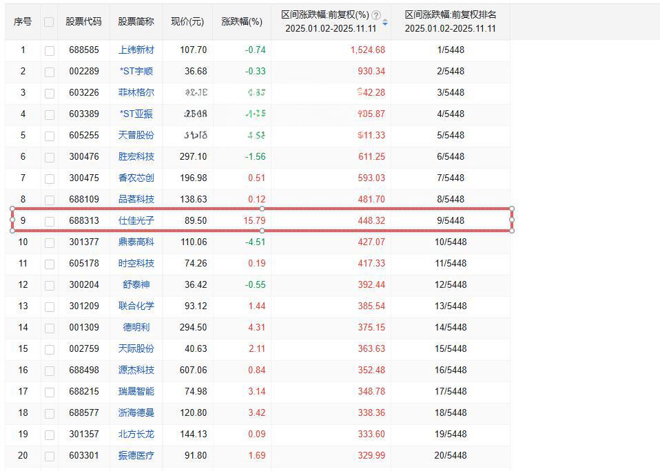 仕佳光子今天总算创了回新高,特意写一篇留个底。说实话这是今天的意外,原本以为还需要来回震荡个把月才能继续新高新高再新高的旅程。过去一段时间市场上总有人吐槽仕佳光子不懂资本玩法:放着Q3单季1.43亿毛利不搞炒作,把利润弄到只有0.83亿。但你以为的“死板”,恰恰是它在光通信赛道里,悄悄憋出的颠覆级王牌——等行业红利炸穿天花板时,才会发现这匹“黑马”早已凭实力,把对手甩了十八条街! 在算力时代,光芯片是AI算力时代的核心驱动力也是光模块规模化的重要瓶颈,也就是说没有光芯片,光模块也将是无米之炊,这也是光子的最大底气,虽然三季度仕佳的业绩不及预期,我依旧选择原谅。 今天光子又冲进前十名了, 再接再厉。