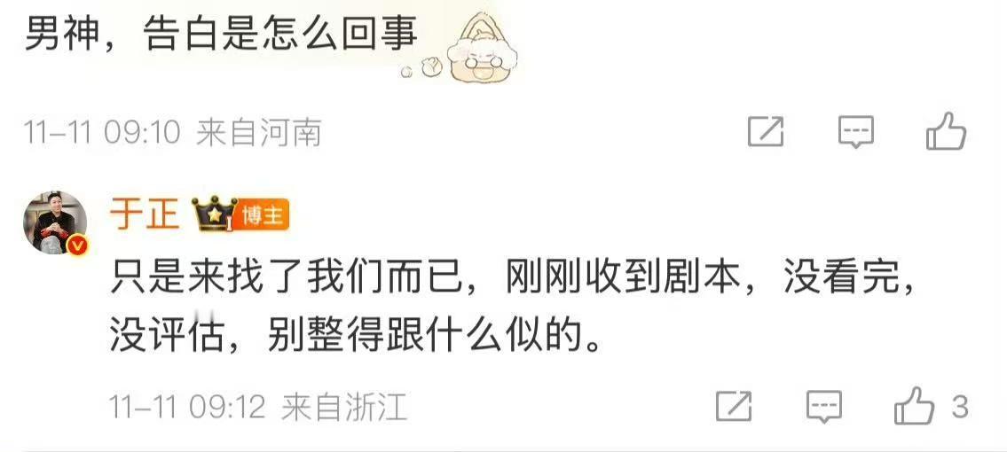 于正回应告白剧本问题 于正回应《告白》相关问题啦!看来具体情况还是得等官宣!