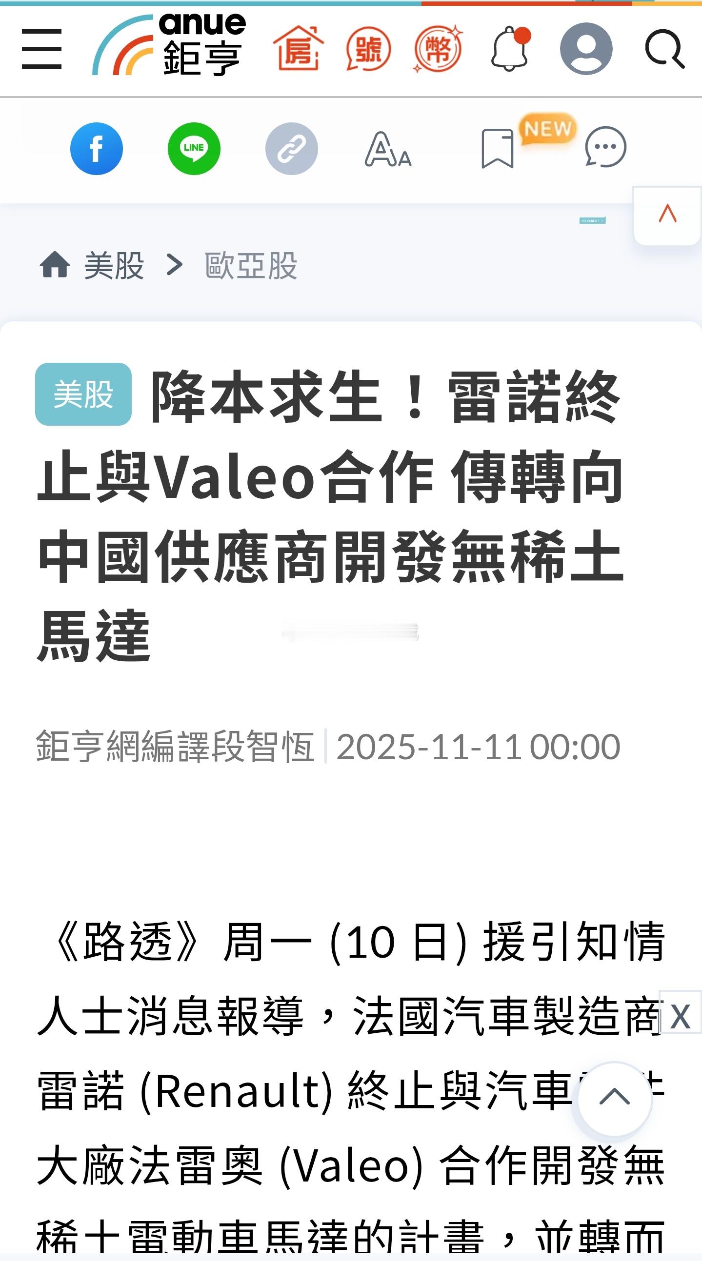 降本求生,据路透社报道,法国雷诺已终止与法雷奥合作开发无稀土电动车马达的项目,并正寻求成本更低的中国供应商。消息人士指出,此举主要是为了降低成本,中国供应商在价格上具备明显优势。