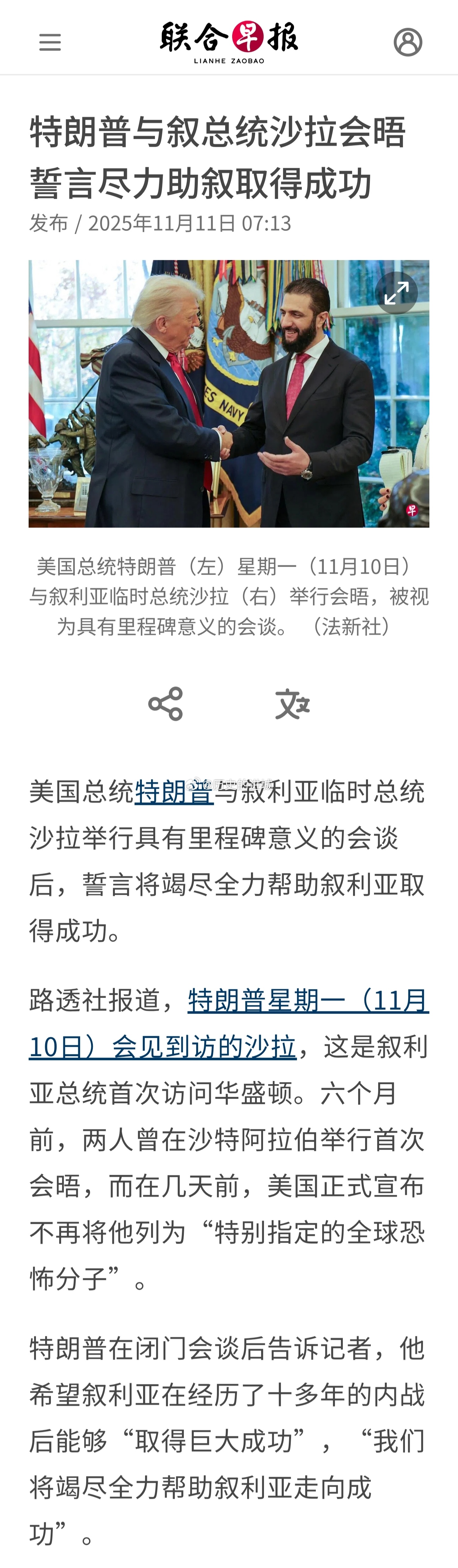 美国总统特朗普与叙利亚临时总统沙拉举行具有里程碑意义的会谈后,誓言将竭尽全力帮助叙利亚取得成功。这也是叙利亚总统首次访问华盛顿。