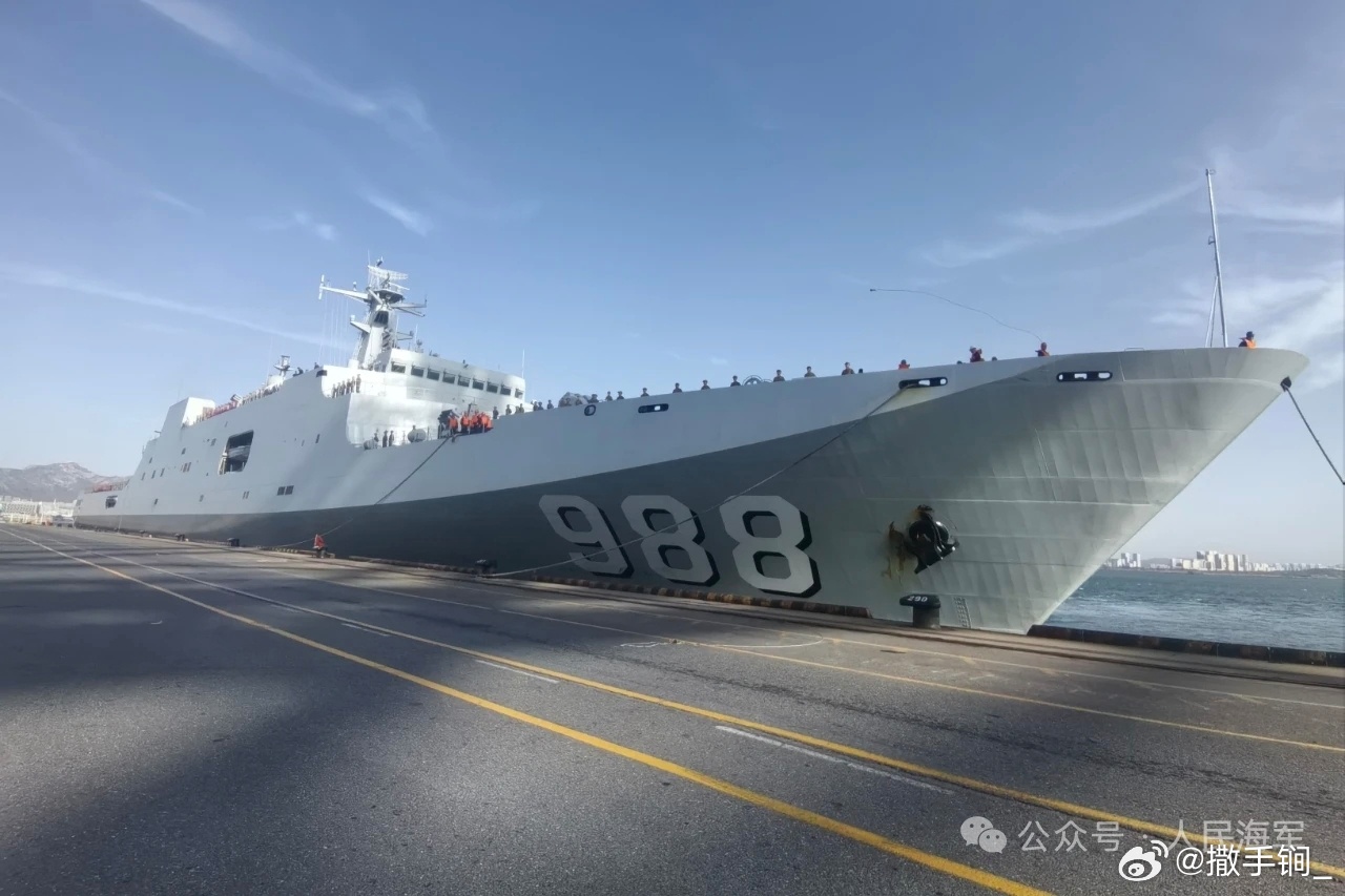 988沂蒙山舰先去大连靠码头,送学员回校,再南下归建。