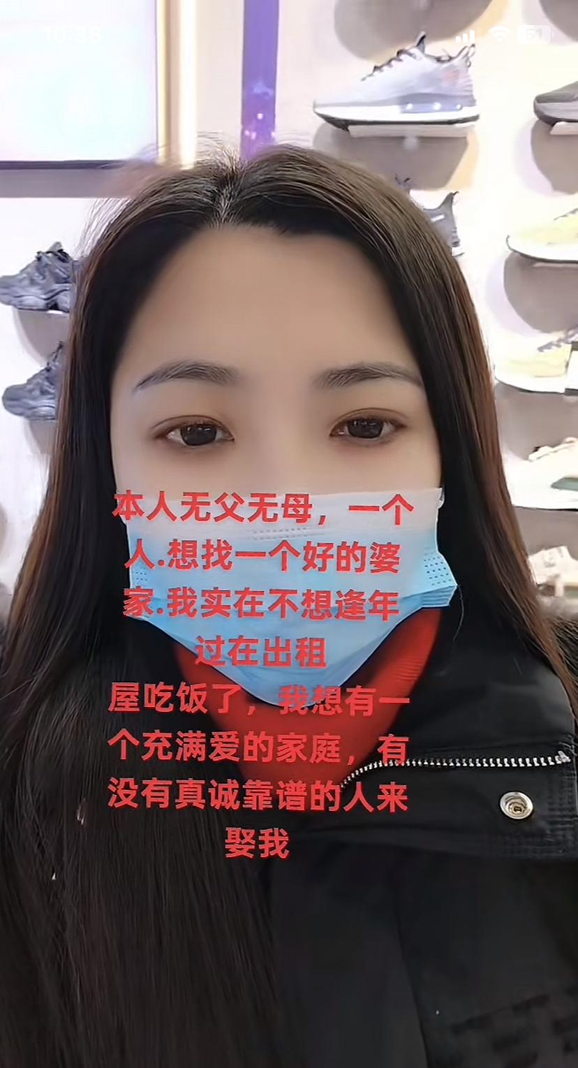 安徽女子婷婷公开征婚,急嫁,43岁,二婚,无父无母,要求有个住的地方就行,她的想法将来老了有个伴。 大龄单身青年不嫌女方条件差的抓紧,女子这颜值也不差,要的条件不高,寻找真诚靠谱有缘人。