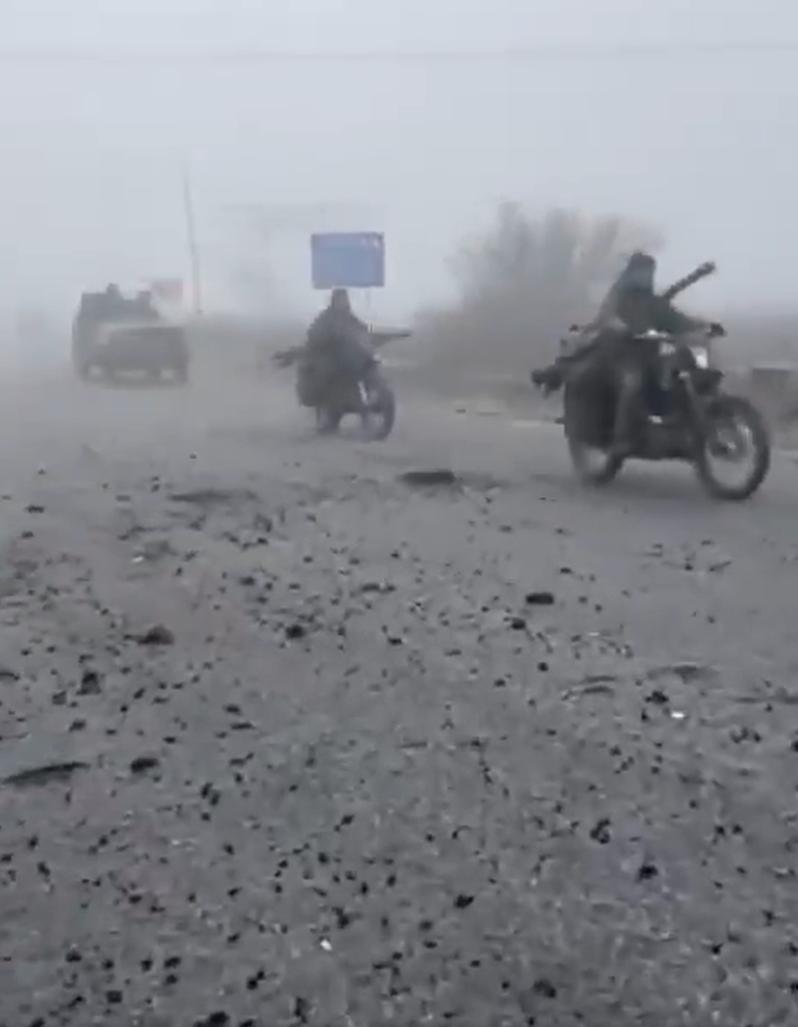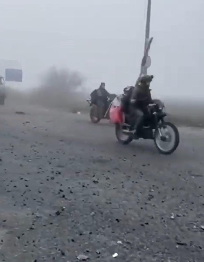 俄罗斯军队在浓雾掩护下大批摩托车队进入波克罗夫斯克。 视频中俄罗斯军队在浓雾中向