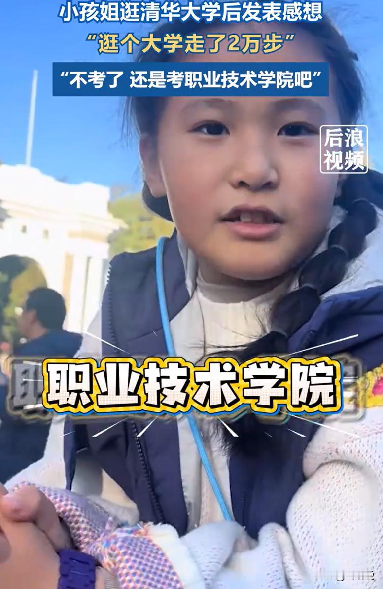 “笑不活了!”北京,一位家长为了激励女儿好好学习,特意带着她去清华大学逛了一圈,没想到一圈下来,家长询问女儿的感受时,女儿却表示以后坚决不考清华,原因是学校太大,走着太累了!家长听到后也是哭笑不得 原本,孩子的家长想象的很美好,带着孩子感受一下清华校园的规模,想让孩子励志考入这个大学,一圈逛下来后,家长询问女儿感受:感觉怎么样?以后考到这里行不行? 女儿却小嘴往上一嘟,回答道:一个大学,走了两万步,我不考了,我还是考职业技术学院吧,这样能少走点路 家长当场无语,这趟“励志之旅”,直接变成了“劝退现场” 其实不少家长都有这样的想法,带孩子看看名校,觉得能激发斗志。可孩子看问题的角度永远是最直接的,他们不会被那些“名气”“荣耀”打动,更在乎当下的感受 对大人来说,清华的校园代表的是成就和未来,对孩子来说,那可能只是一个“走太远的地方”。这种反差有点搞笑,也挺真实 很多时候,家长想传递的“理想”和孩子理解的“现实”,压根不在一个频道上。孩子不是没上进心,而是他们的世界还没被“目标”和“压力”填满,他们的想法往往从最生活的角度出发 要真让她喜欢学习,可能不是靠清华的震撼感,而是一次自己能看懂、能参与的小成就,比如考试多写对几道题、拿到老师的表扬,可能更直接