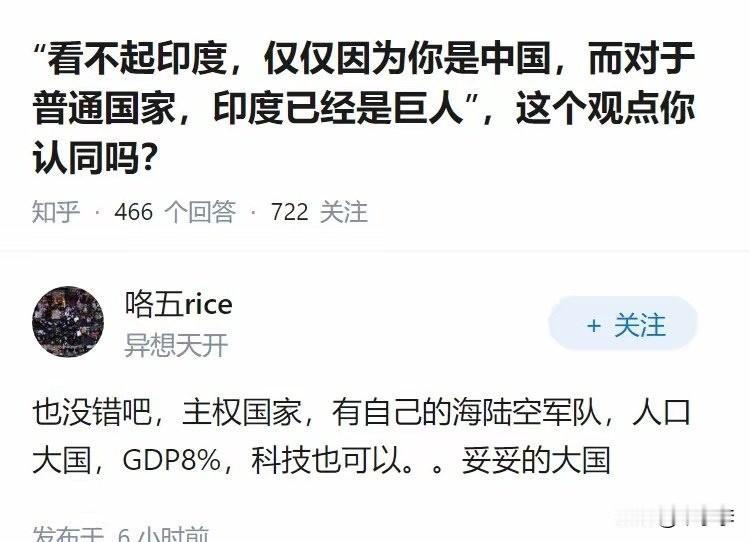 抛开喝恒河水、用手擦屁股、用手抓饭、随地拉屎撒尿不提,三哥还是很巨人的。我觉得如果印度跟本子对打,大家谁都别拉偏架,本子真干不过印度 没有中国的话,印度妥妥发展中国家的霸主,对上英法都可以一定优势。但是中国在这里,衬托的印度像个笑话。[抠鼻]印度 印度人地位