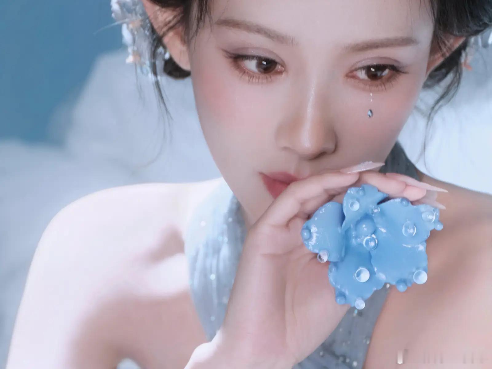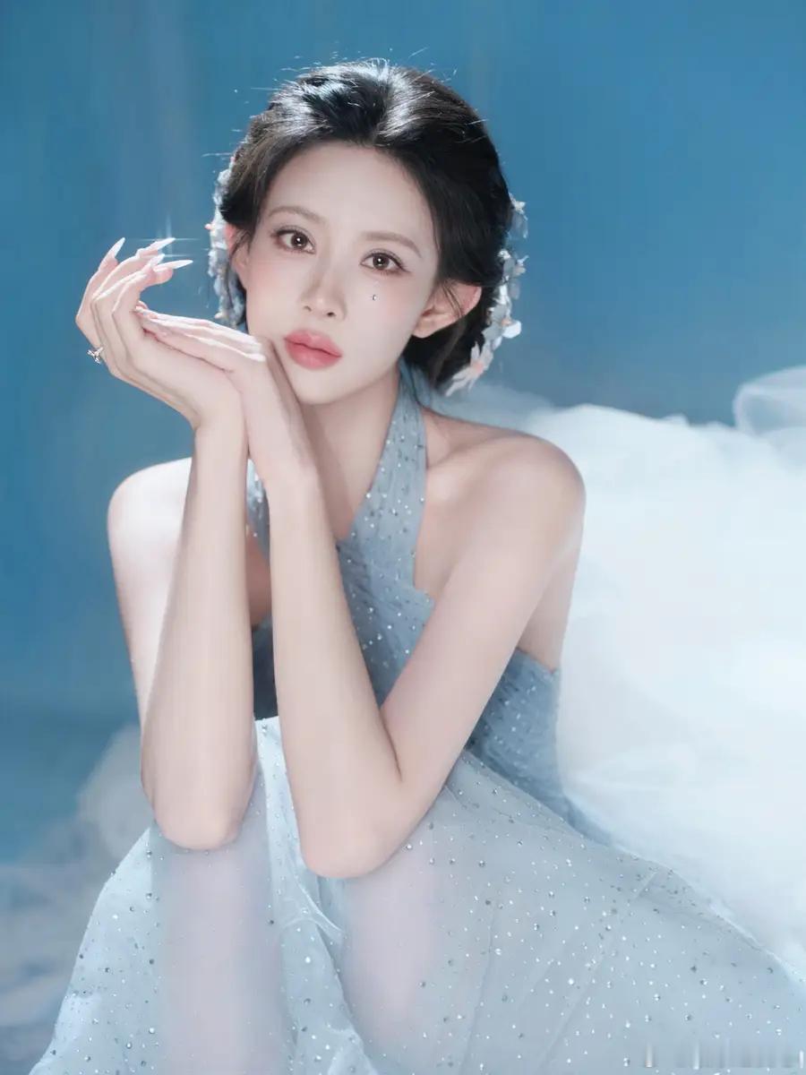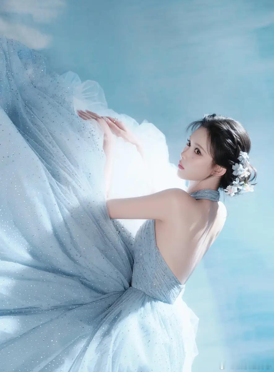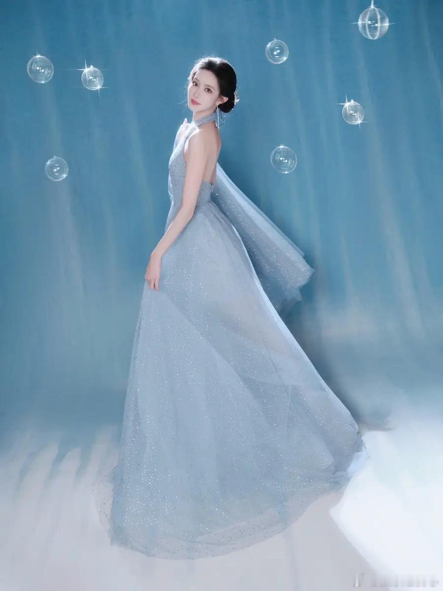 10日,工作室在社交平台分享了一组孟子义梦幻大片。图中,她妆容精致,身着浅蓝露背亮片裙,气质优雅。
