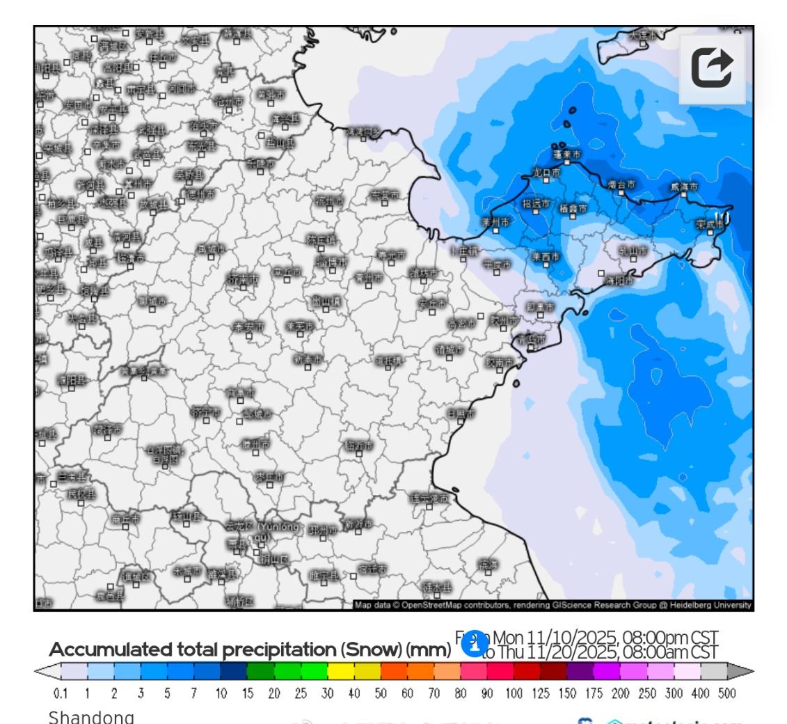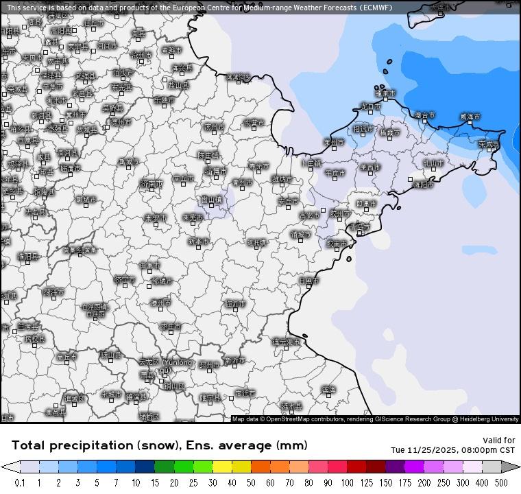 山东半岛的冷流雪也有了信号:ec决定报给的范围较大,强度较强,但集合平均就一般了,威海烟台沿海强一些。而aifs则是基本聊胜于无。冷空气气象观察团