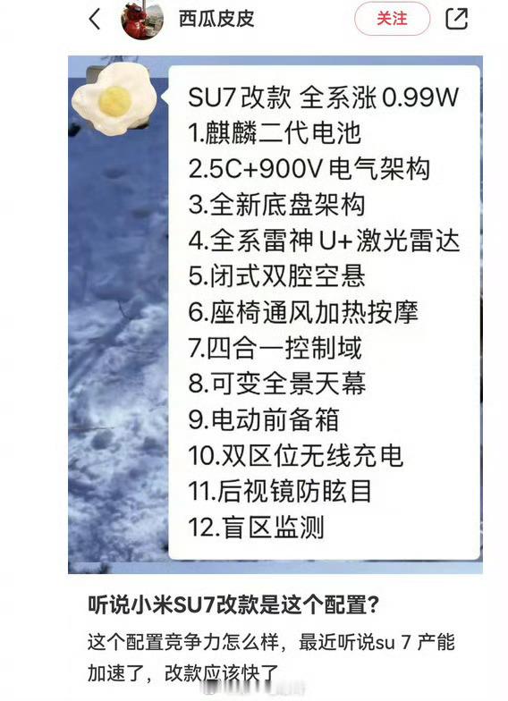 小米SU7改款车型要涨价?