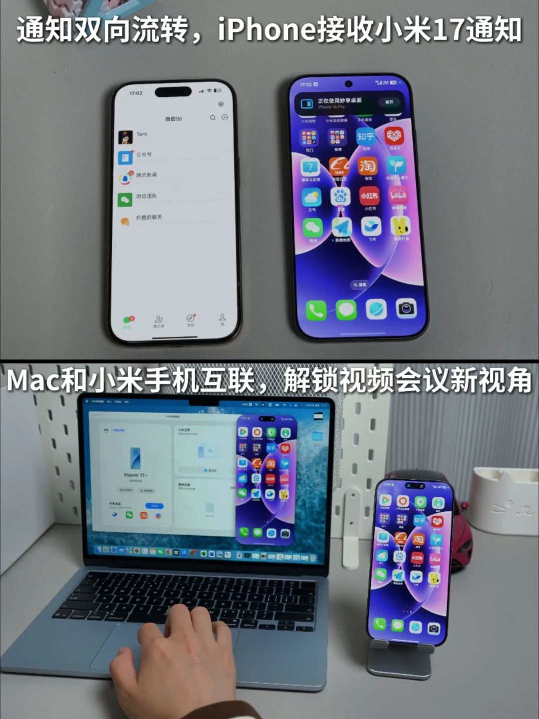 重要消息不错过小米17和iPhone通知实时同步,一台充电另一台照样回微信、接电话,iPhone能直接回复小米17的微信消息,双机党终于不用来回奔跑拿手机。