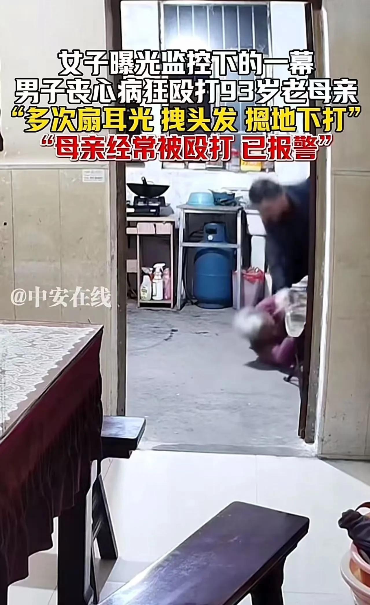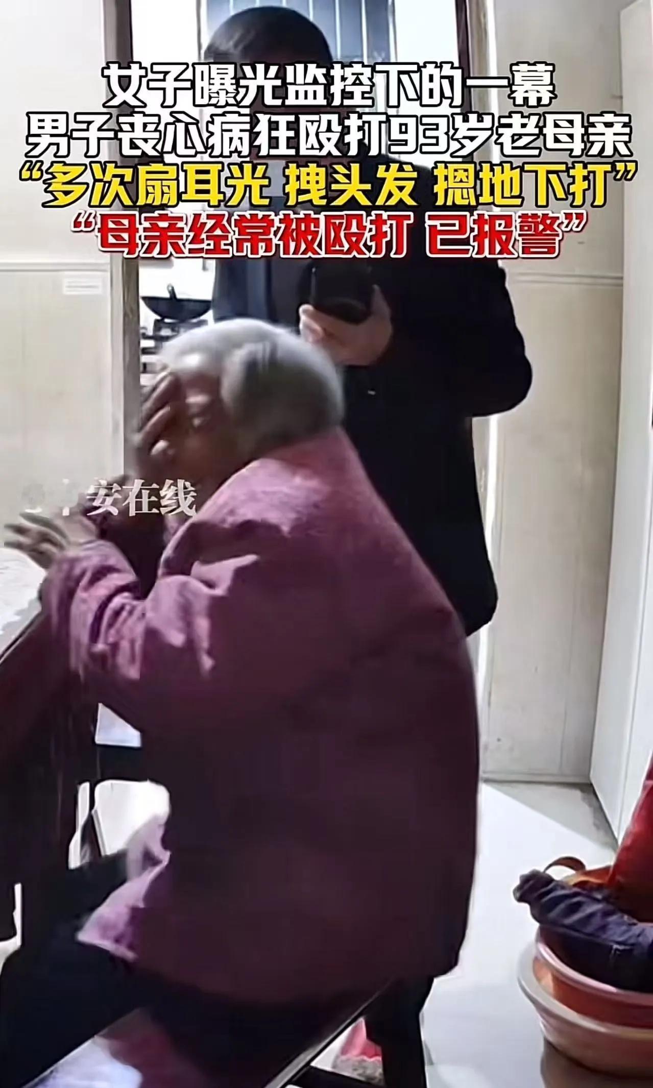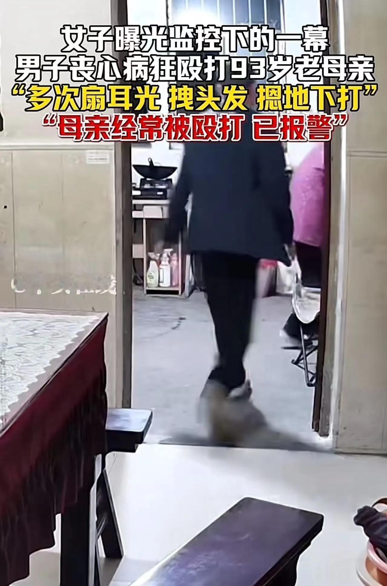 我的天!江苏这事儿看得我心里发堵!儿子居然对93岁的亲妈动手,也太让人揪心了! 跟你们唠唠,这老人一直被儿子这么对待,女儿实在没办法,才偷偷装了监控留证据。 就因为几句拌嘴,那男的居然抬手扇耳光、拽着老人头发往地上摁,还抬脚踹!老人瘦得只剩一把骨头,哭着想跑都被追上摁住,打完他倒好,骂骂咧咧去吃饭了,跟没事人似的。 生养一场,对年迈的亲妈下这样的手,实在让人寒心!孝道从来不是嘴上说说,连最基本的尊重都没有,该有的规矩和惩罚可不能少。