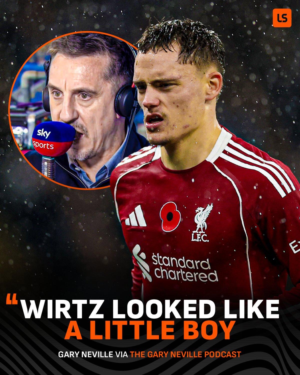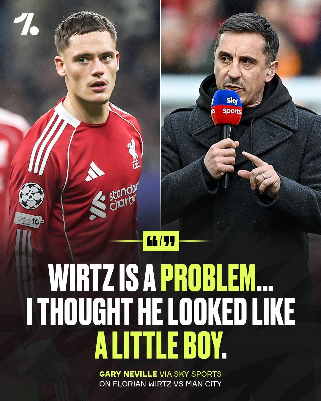【他就像个小男孩】内维尔谈维尔茨对阵曼城的表现:“维尔茨(的表现)是个问题,我们实话实说吧。这是个问题。他身价1.2亿英镑,但在场上看起来像个小男孩😳。” “这行不通。他是一位地位很高的德国国脚,但在这样一场顶级身体对抗的比赛中,他看起来远远达不到你的期望。” “他们必须让他尽快适应,把那种坚韧的精神注入给他,让他能够进入状态。他们必须坚持使用他,坚持下去,但他们必须找到一种方法,让他发挥出最佳水平。”利物浦