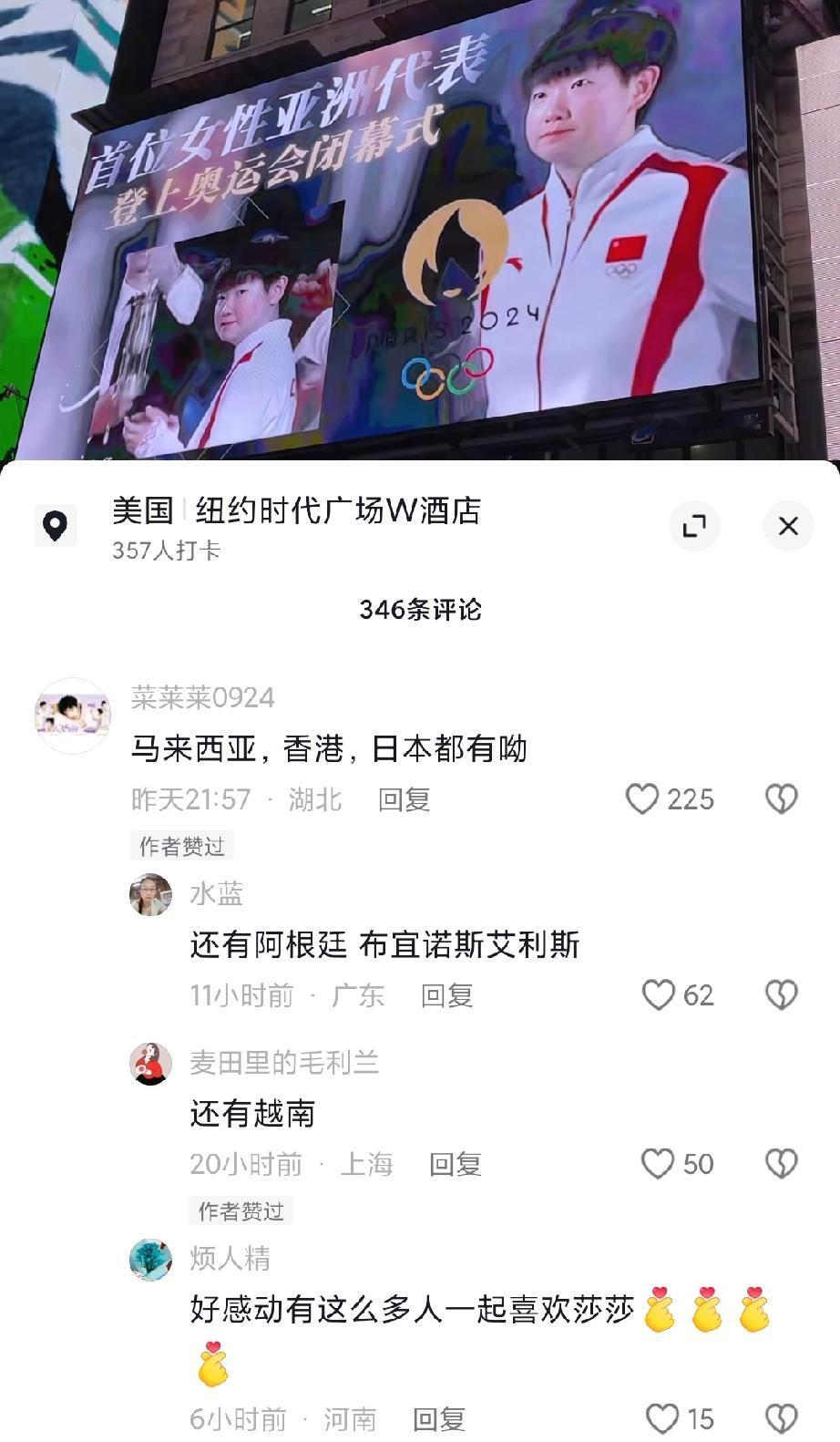 越来越有意思了! 想过莎莎过生日品牌方会有祝福,没想到阵仗那么大。 不仅仅国内,国际奥委会专门为莎莎发生日祝福。 纽约时代广场有莎莎的投屏。 马来西亚有莎莎的投屏 香港有莎莎的投屏 日本有莎莎的投屏 大家对莎莎的爱,不仅仅是嘴上,也在行动上。
