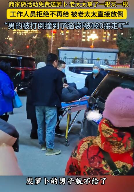 “太缺德了!”吉林四平,一商家做活动,为了吸引顾客,给市民免费发放萝卜,结果一个老太太连续拿了好几根,工作人员见状就不再给了,没想到,老太太竟一拳将工作人员撂倒,摔倒后又磕到了脑袋,被救护车拉走! 人性的贪婪和无耻,都是从免费中展现出来的。贪小便宜吃大亏,这老太太想多赚几个萝卜,估计得赔上大笔医疗费喽。 这种损人!一根萝卜值多少钱?一元五元一万元?何况萝卜没多少儿喜欢吃,为了贪点小便宜动手打人!报警!希望受害人不能对这种人渣客气! 为了占点小便宜还动手打人,这不也摊上事了吗?人品不咋地是肯定的了,也应验了占小便宜吃大亏那句话了,这不是活该么?