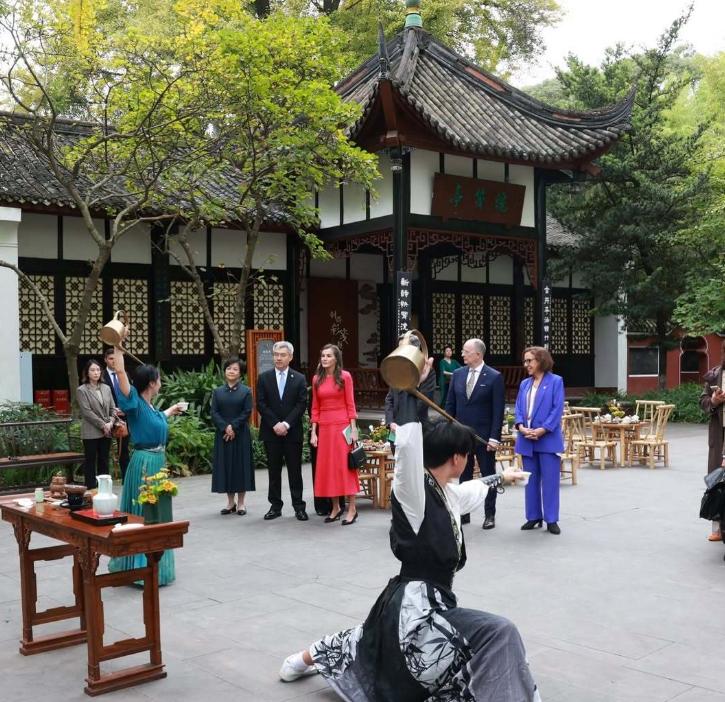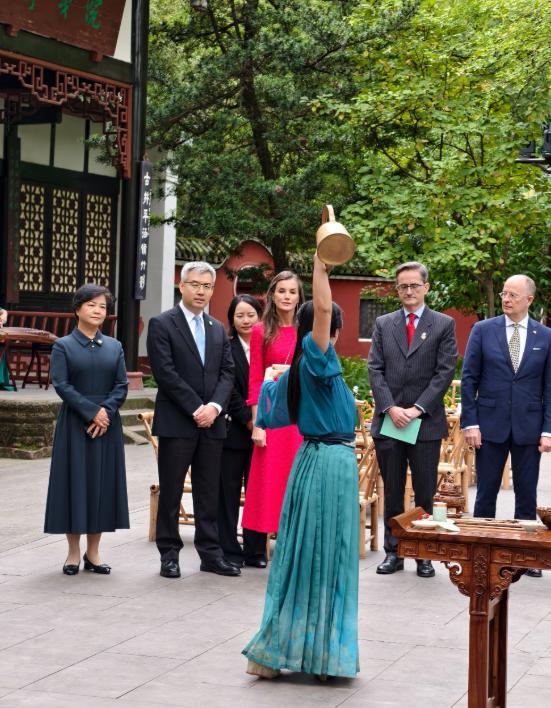 莱蒂齐亚王后观看茶艺,表演茶艺的小姐姐美翻了!11月11日西班牙王后体验中国文化