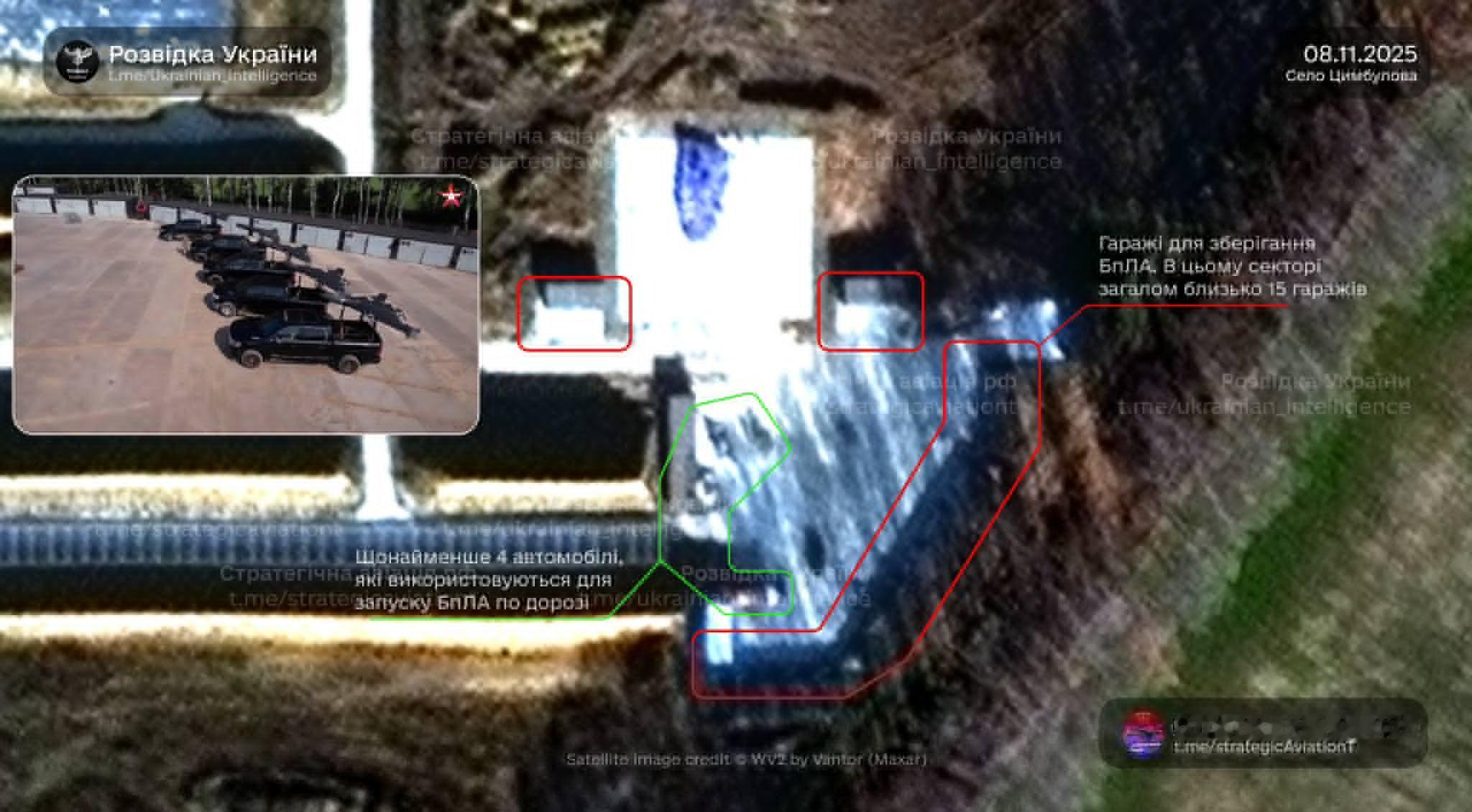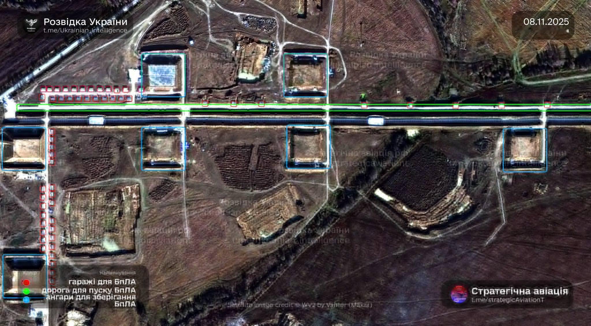 卫星图像显示,俄罗斯奥廖尔Tsymbulova附近的无人机发射场,至少有93个车库和15个无人机库房,总面积超过5平方公里,估计一天内可以发射超过500架无人机。