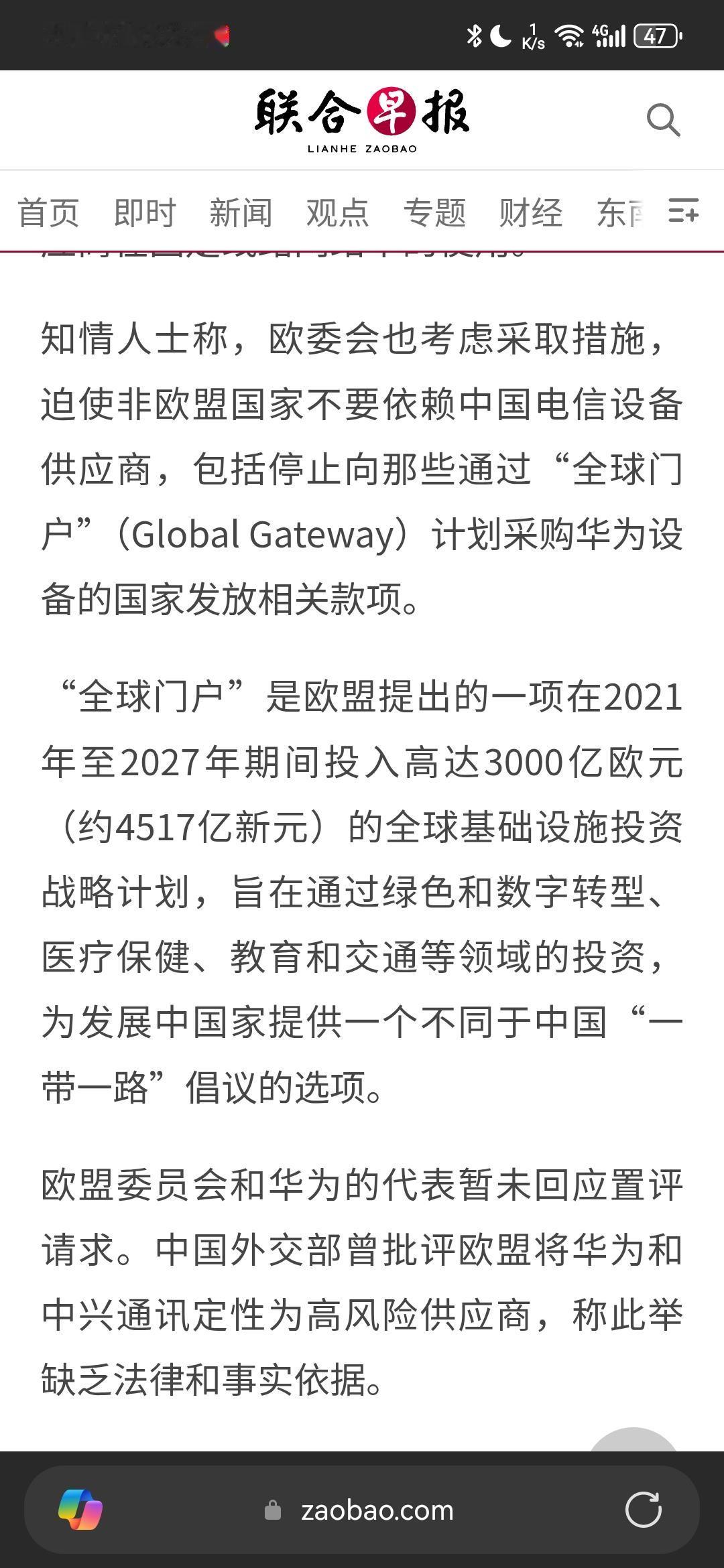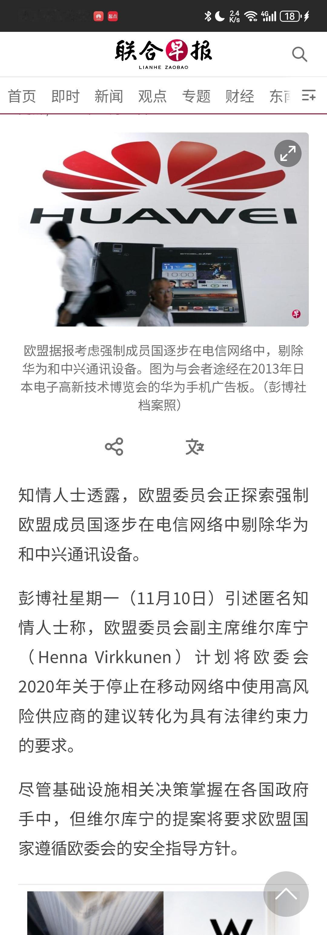 欧盟又开始对华为下手了。联合早报11月11日报道说,现在欧盟委员会正准备探索办法,要强制欧盟成员国逐步在电信网络中剔除华为和中兴的通讯设备,甚至还考虑采取措施,让非欧盟的国家也不再采购依赖我们的电信设备供应商。 欧盟之所以要这样做,主要有两个原因。 第一个原因,是早在2020年,欧盟就要求其成员国更换华为、中兴的通讯设备,但是欧盟的那些成员国也不是傻子,我们华为、中兴的通讯设备产品质量是最好的,平白无故更换,不仅会给自己国家造成巨额的经济损失,而且还会影响自己国家的科技发展,因此即便是欧盟提出了这个要求,这些成员国也阳奉阴违,很多都没有理会欧盟的这个命令。 到现在,欧盟实在是没有办法了,因此想要将这个要求“法律化”,形成一条法律,然后强制自己成员国更换。 第二个原因,是欧盟自己也生出了一个野心,也想要在电信通讯设备这个领域分一杯羹。欧盟专门为此提出了一项“全球门户”计划,准备在2021~2027年投入3000亿欧元,给那些非欧盟的发展中国家建设各种基础设施,其中自然就包括电信设备。 只能说,现在欧盟真的是越来越拉胯了。对于任何一个正常的经济体来说,首先需要考虑的应该是怎样才能让自己发展得更好,现代社会又是一个信息社会,那么与电信网络相关的电信设备基础设施,自然是重中之重,对于这种设备,就算是用脚丫子想也知道,就应该用最好的,只有这样才能够真正促进自身经济发展。 可是欧盟硬是不这样做,硬是要把华为、中兴提供的电信设备,从自己成员国给剔除出去,换成其他的。这样做,对欧盟成员国而言,对欧盟自己而言,能有什么好处呢?百害而无一利。欧盟这样做,其实就是在削弱自己的竞争力。 本来欧盟就已经在互联网时代落后了,人工智能行业在美国中国都发展得如火如荼,欧洲一点水花都看不到,在这样的情况下,还要削弱自己在互联网时代的竞争力,真不知道他们怎么想的。 至于他们自己也想要从电信设备这个领域分一杯羹的野心,那就更加搞笑了,现在欧盟有哪怕一点能力,能够在这个领域跟我们竞争吗?之前欧盟想要入局电池领域,举全欧盟之力,建造了一个电池工厂北方伏特,投资了150亿美金,最后直接灰溜溜破产。现在还想要制造电信设备,做好破产的准备了吗?难道欧盟真的对自己的实力没点数吗? 曾经那个辉煌的欧洲,现在是真的落寞了,种种操作简直都让人哭笑不得。