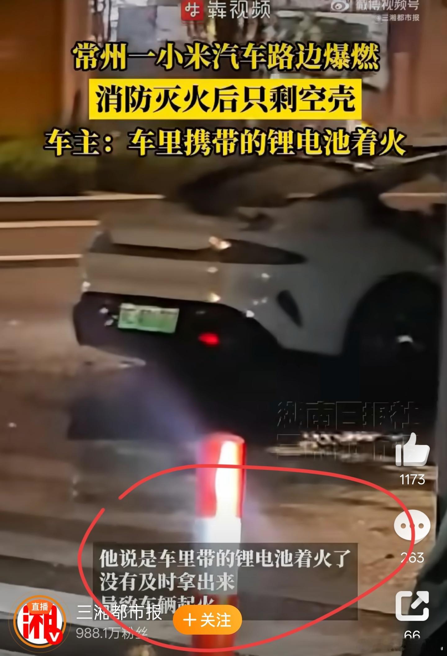 划重点,是车子改装后车主带的锂电池着火,因为没有及时拿出来,导致车辆起火,和车辆本身质量没有任何关系,这也是个常识问题,车内尽量不要放易燃易爆的物品。视频里很清楚是车内着火,不是汽车电池的问题,人没有受伤,坦言相对,提醒大家要注意安全。不要看到车子品牌就想蹭流量,搞个大新闻一样,车主已经讲的很清楚了,当时人不在车内,离开后带的锂电池着火,因为没有及时拿出来,导致车内着火,改装车要慎重,尤其是电池这种易燃易爆物品。
