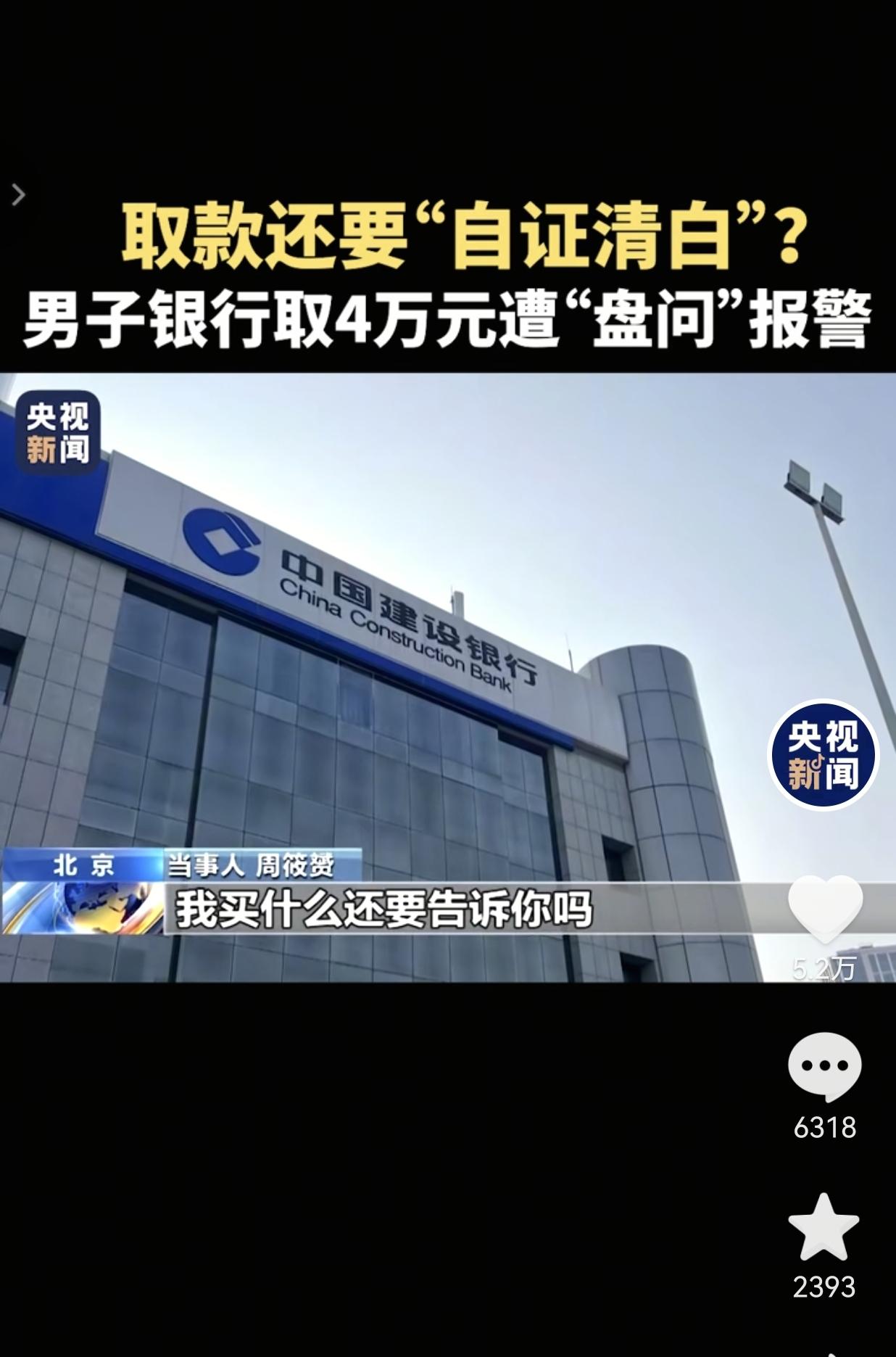 央视终于报道了!取款还要自证清白,众多银行的做法最近几年已经引起老百姓的反感。我们不知道银行真实的理由是什么,但这种打着反诈旗号、对公民财产自由权的侵害,已经透支了政府乃至国家金融系统的信用。反诈是银行的义务,但不能以义务为由头滥用权利。希望这次央视的报道,能彻底扭转这股歪风!取钱被查 取款经历