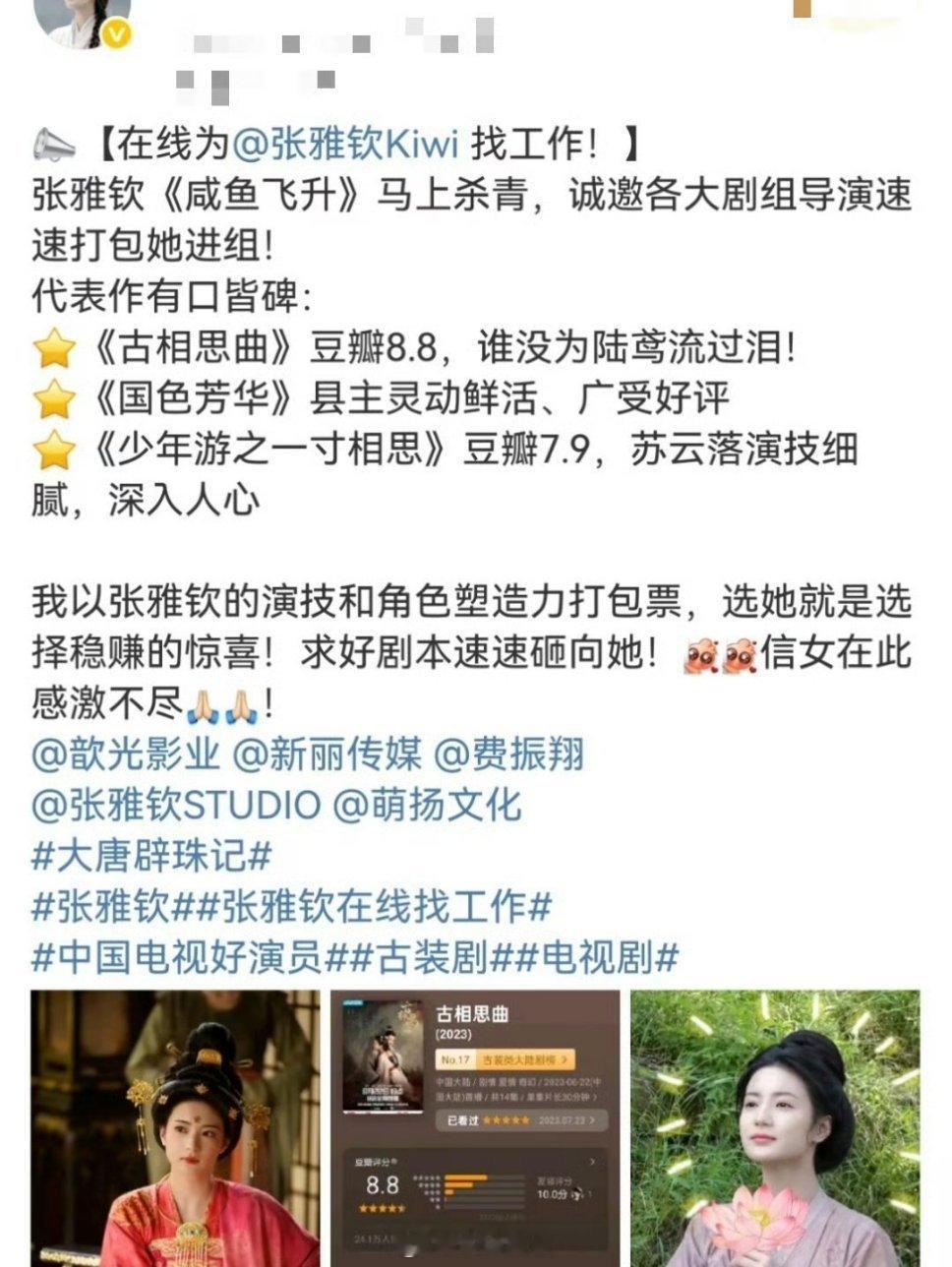 啧,又飞升了一个95🌸 粉丝也是事业粉,还在线为张雅钦找工作,🌸粉给力