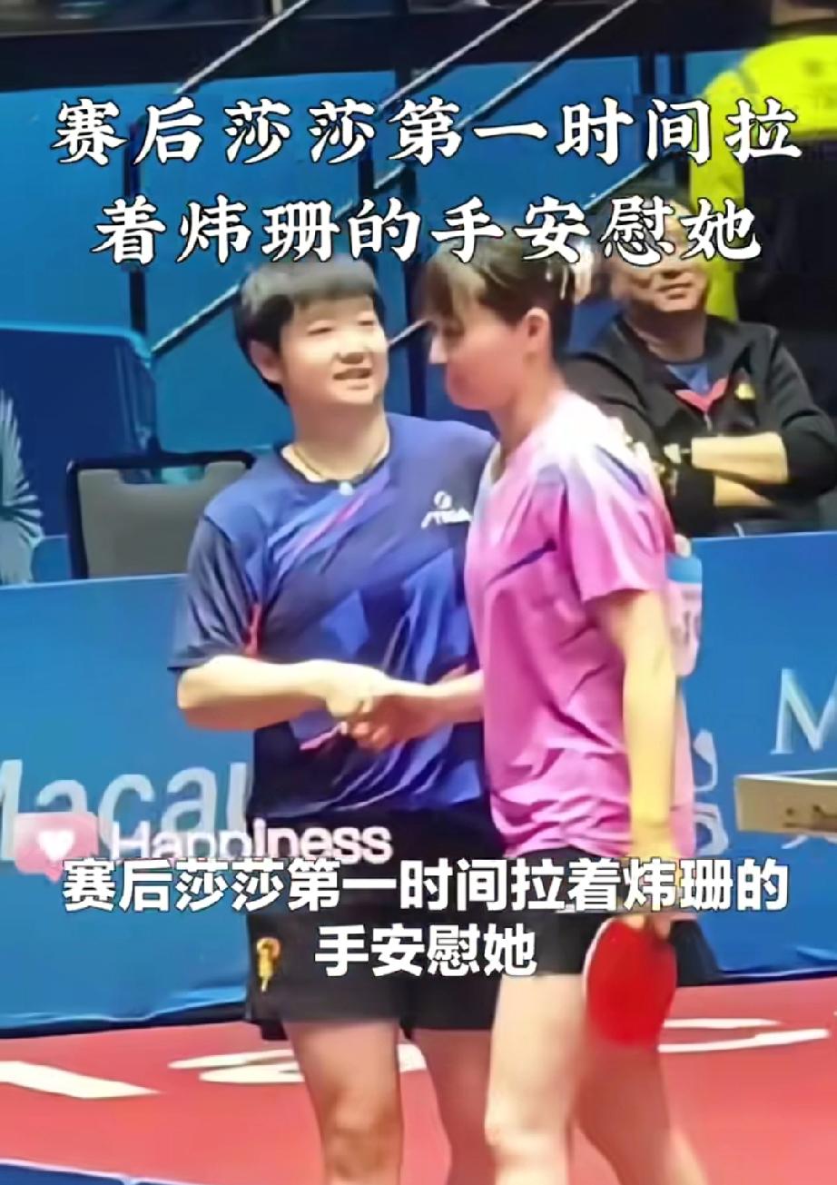 这下好了,莎莎又要好好哄哄刘炜珊了,竟然把人家0封了。 莎莎:炜珊,待会一起吃冰淇淋不,我发现一个非常好吃的口味。 炜珊:我不吃冰淇淋,我想吃小面包。 莎莎:行行,都随你,你喜欢啥口味的我请你吃 小姐妹就是用来哄的,场上谁都能打过,场下是一个都打不过。 上一次莎莎把雅可妹妹打败了,下来就对雅可说:“吃火锅不”。 哈哈,小姐妹没有一顿饭解决不了的事。