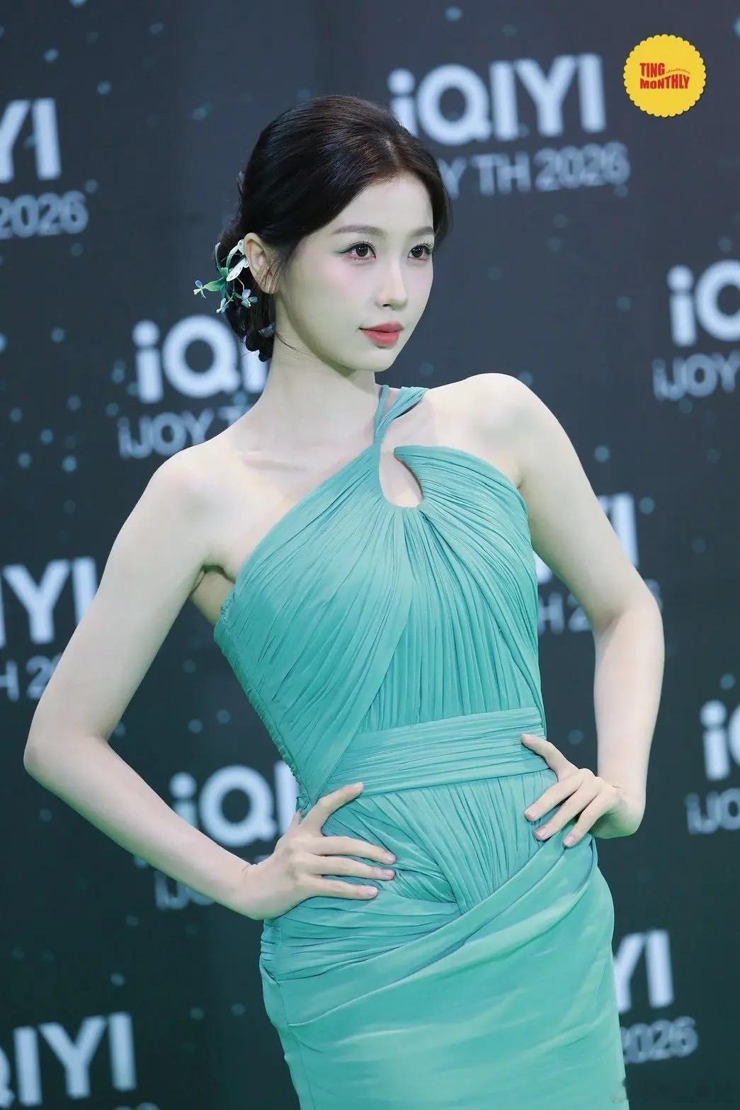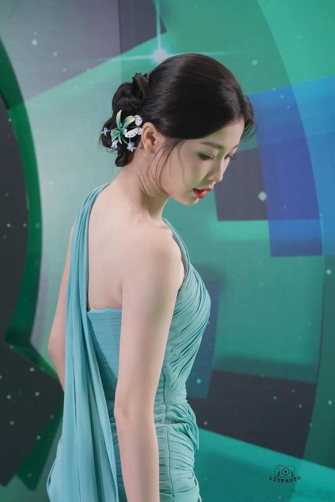 虞书欣这是换赛道了?跑泰国绿毯惊艳亮相,一袭湖蓝色抹胸拖地长裙异域风情十足,
