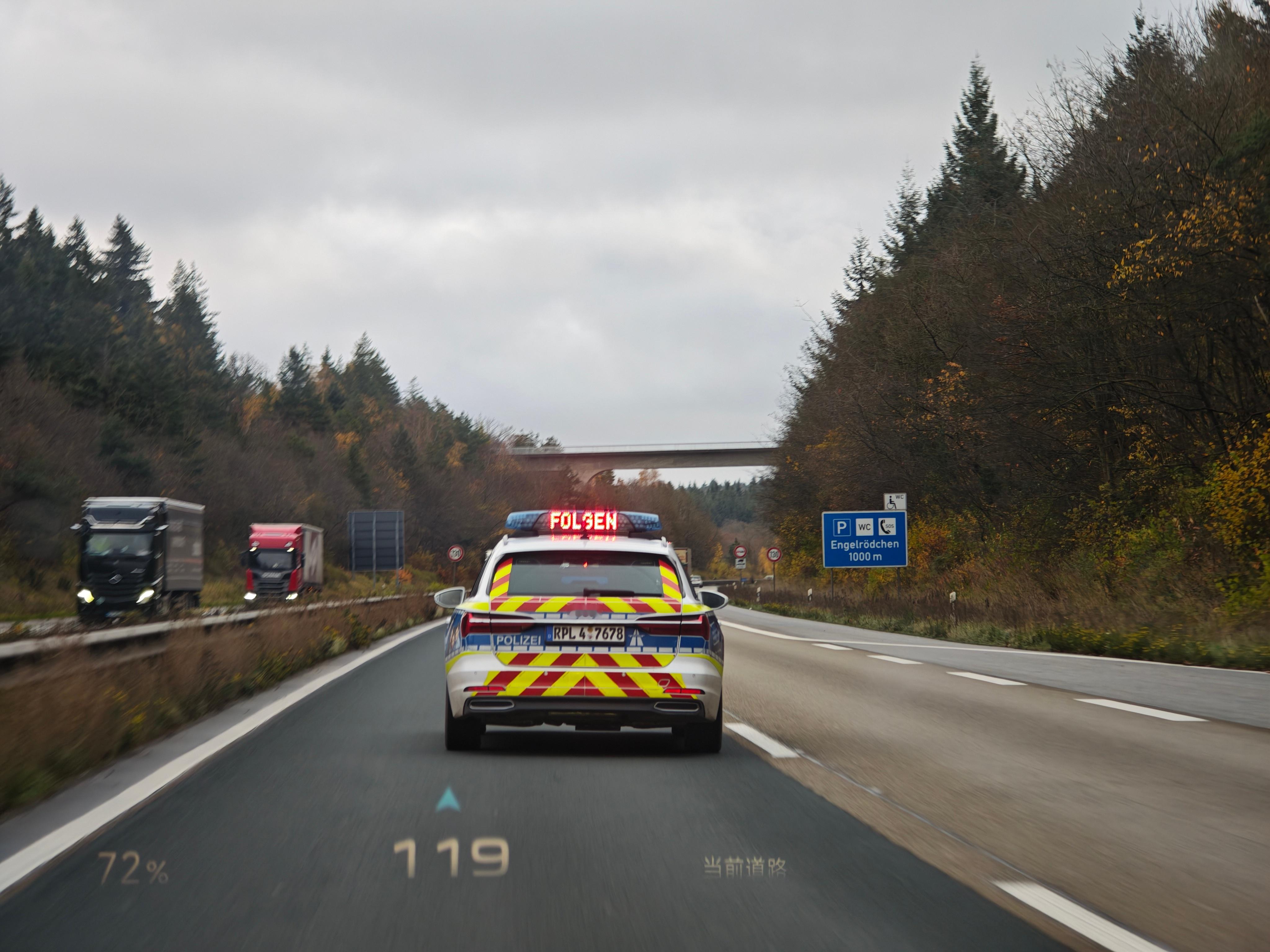 德国高速,被交警gank了,原因是超速。交警说我在限速130的路段,开到了140多,接近150,我估摸应该就是恰好我一路超车的时候,恰好超到这台警车了,然后速度超了,但我没意识到。我真不是故意要超速,因为纽北到凯撒斯劳滕,大概有170公里,我在纽北充满电,肯定能到。但如果我奔着超跑目的,跑180,200,甚至300,那是百分百到不了的。所以我是没有任何动机去超速的。但确实超了,还被交警逮了,是我的问题。警车反正当时咔一下闪我前面来,灯上写着follow me,我直呼大事不妙,但只能跟着去服务区了。我跟交警解释了一下,我的Google Maps突然用不了了,我只能用China maps(高德地图),但路边标识我没注意看,是我的问题,我认罚。德国交警查了我的护照,驾照,车执照,看我各种手续都齐全,保险也有(昨天扫地森恰好刚给我交上了),于是问我这一趟行程到哪儿去,从哪儿出发的?我说从纽博格林,去凯撒斯劳滕。他们笑着说,高速可不是纽博格林啊,要注意不能超速,我连忙道歉。交警看我态度不错,又是个老外,可能也不想为难,口头教育了一下,放我走了。结果,他们本来都朝自己车去了,但是突然,俩交警荷枪实弹,又走回来了。我心里咯噔一下,谁知道俩交警过来看车来了,居然只是好奇小米SU7 Ultra内饰长啥样,俩人讨论了几句,然后就溜了。吓我一跳。不过我得检讨自己,不管什么原因,超速就是不对,人家没罚是人德国交警友好,我吸取教训,绝无下次。