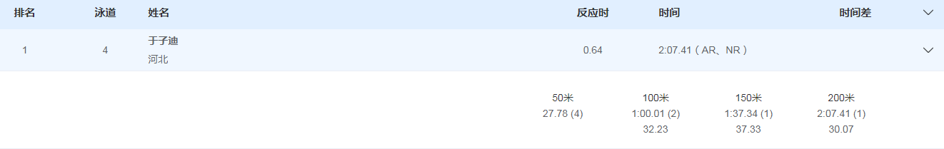 于子迪200米混合泳全运会世锦赛决赛分段对比: