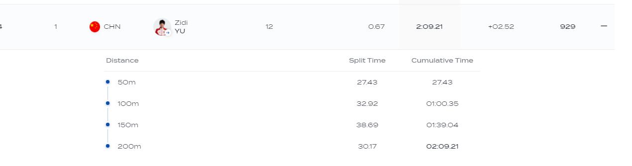 此前蛙泳一直是于子迪的弱项,经过三个月的训练提升,于子迪蛙泳分段比世锦赛时提升了1.33秒,仰泳提升了0.69秒。
