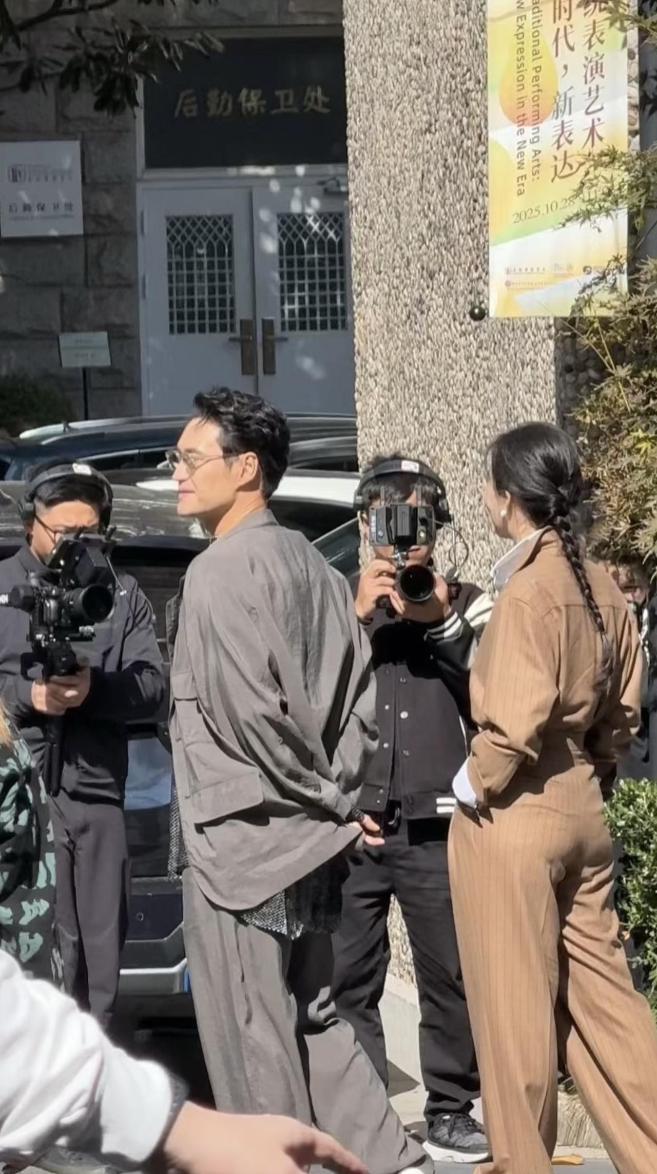 11月10日,有位网友在上海偶遇袁弘和田朴珺,两人走在上海戏剧学院校区的路上。 当天,袁弘与田朴珺一起参加拍摄活动,44岁的田朴珺,看上去像30多岁的样子,她骨子里有着女强人的魅力。袁弘 田朴珺 上海
