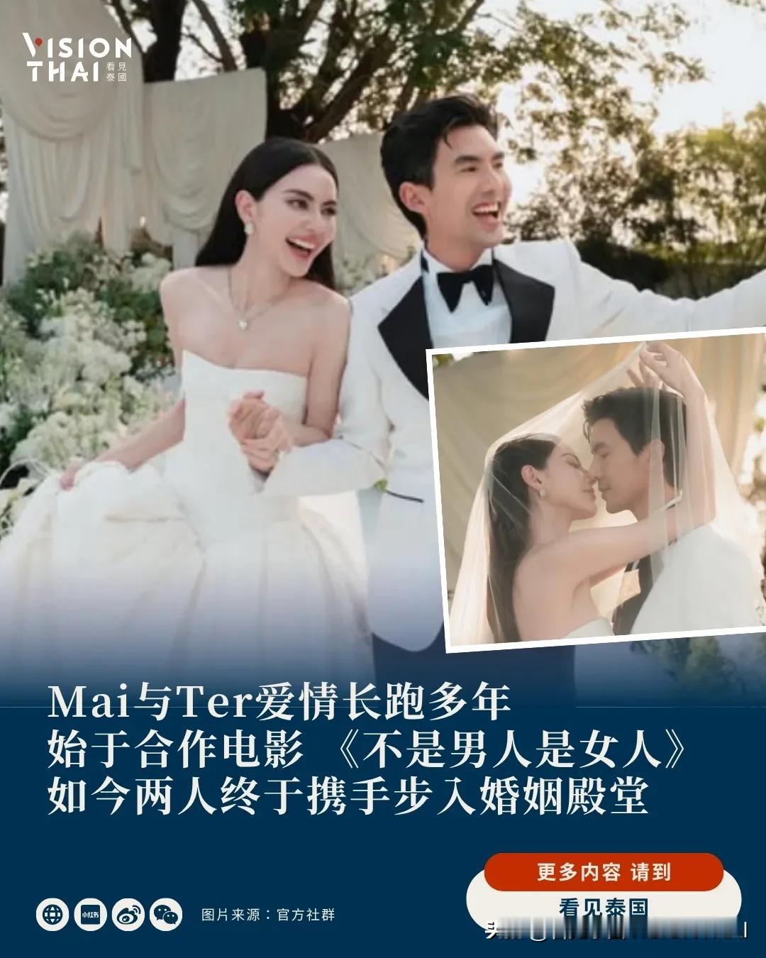【33岁泰国女星MAI DAVIKA晒婚纱照 与42岁泰星TER低调完婚宛如公主与王子】 33岁的泰国人气女星Mai Davika与交往多年的男友、42岁的编剧兼演员 Ter Chantavit 终于修成正果!两人于11月9日低调举行婚礼,为这段长跑多年的恋情画下浪漫句点。 婚礼翌日,Mai于 Instagram 晒出一系列婚纱照与现场影片。画面中,新郎新娘身穿纯白礼服,气质优雅,宛如童话故事中的王子与公主。两人深情对望、相视而笑,甜蜜互动洋溢幸福氛围,粉丝纷纷涌入留言区献上祝福。 在众亲友与演艺圈好友的见证下,Mai与Ter交换戒指,并在众人掌声中上演浪漫的「头纱之吻」。婚礼现场气氛温馨感人,小俩口更在镜头前大方拥吻,画面如偶像剧般唯美。 值得一提的是,Mai 在婚礼早晨仪式中所穿的泰式婚纱 以「纯洁的爱」为主题,灵感取自「莲花」。婚纱使用来自南奔府(Lamphun)的 手工织泰丝制作,耗时长达200小时,并以两人名字结合命名为专属花纹「Chantawika(ฉันทวิกา)」。 新娘的婚纱采用鱼尾剪裁,结合传统泰式元素,披上古典的สไบ(S̄bai)披肩,展现泰国传统之美。礼服上缀以莲花与情侣蛇图案刺绣,象征爱情的纯洁与守护。整体造型搭配灵感源自莲花与古典泰式纹饰的珠宝,镶嵌 蛋白石(Opal)与白锆石(White Zircon),寓意延续泰国传统工艺与文化传承。整套婚纱设计寓意深远、工艺精致,完美诠释了两人爱情的纯淨与高雅。 这对「金童玉女」的爱情故事始于合作电影 《不是男人是女人》,之后感情迅速升温,并于 2018 年初公开恋情。尽管Mai 过去多次表示对婚姻的嚮往,但Ter一直保持低调,外界曾因此猜测两人关係进展缓慢。如今两人终于携手步入婚姻殿堂,让粉丝们欣喜不已。 Ter Chantavit(昵称「德叔」)现年42岁,毕业于朱拉隆功大学,是泰国知名编剧与实力派演员,2008年踏入演艺圈,并在 2010 年凭藉浪漫喜剧 《嗨!陌生人》爆红,之后陆续出演《爱我一下夏》、《一日情人》、《骗骗爱上你》等作品,展现演戏魅力及幽默感,深受不同年龄层泰国观众喜爱。他不仅演技精湛,也经常亲自参与剧本创作,作品风格幽默中带有深意,深受观众喜爱。 Mai 自出道以来人气居高不下,凭藉2013年电影 《鬼夫》(Pee Mak)中的「鬼妻」一角爆红全亚洲。身为泰国比利时混血的她,拥有精致立体的五官与高挑身材,气质独特,兼具实力与美貌。她的 Instagram 粉丝人数已突破 780 万,是泰国当今最炙手可热的女星之一。 模特儿出身的 Mai 能轻松驾驭各种造型,多次入选「全球百大最美面孔」,年仅21岁便创下十亿票房纪录,24岁更夺下影后殊荣。她主演的每部作品几乎都掀起话题热潮,无论影视或时尚领域,皆是泰国娱乐圈最耀眼的存在。 原文:-hans/article/mai-ter-marriage/ 看更多:-hans/